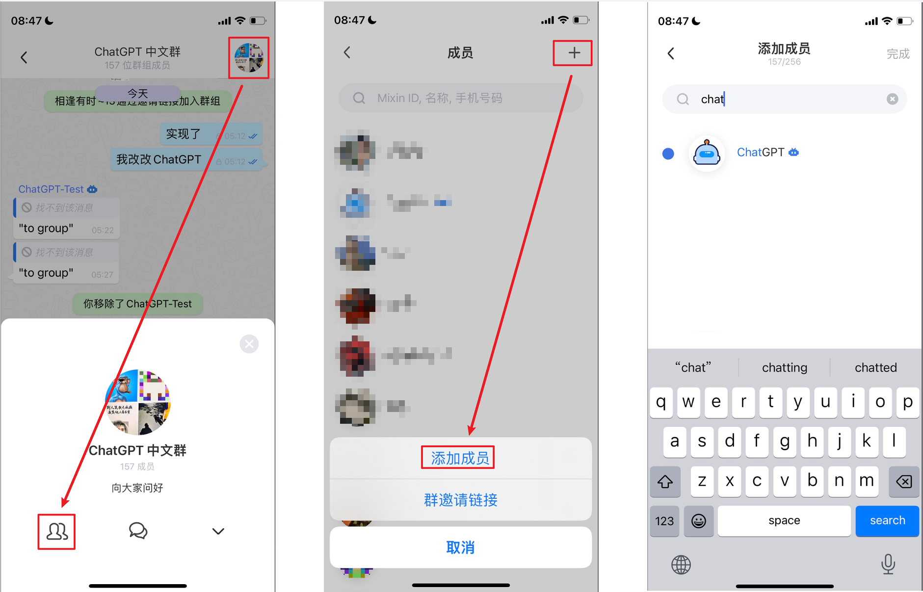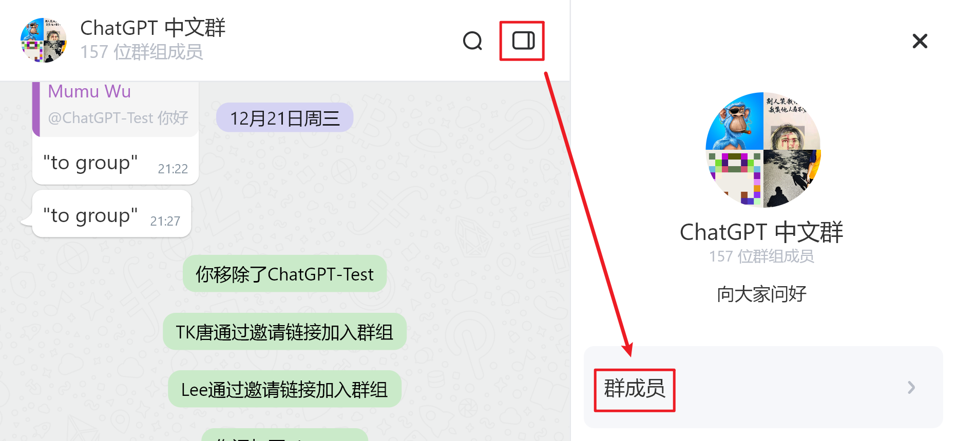 1.在群聊中添加“ChatGPT”为群成员,详细步骤在最后;