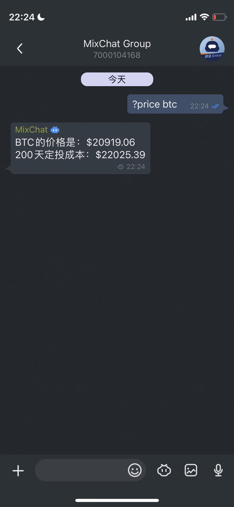 比如,在超级群内直接发送?price btc,即可获取bitcoin的价格。