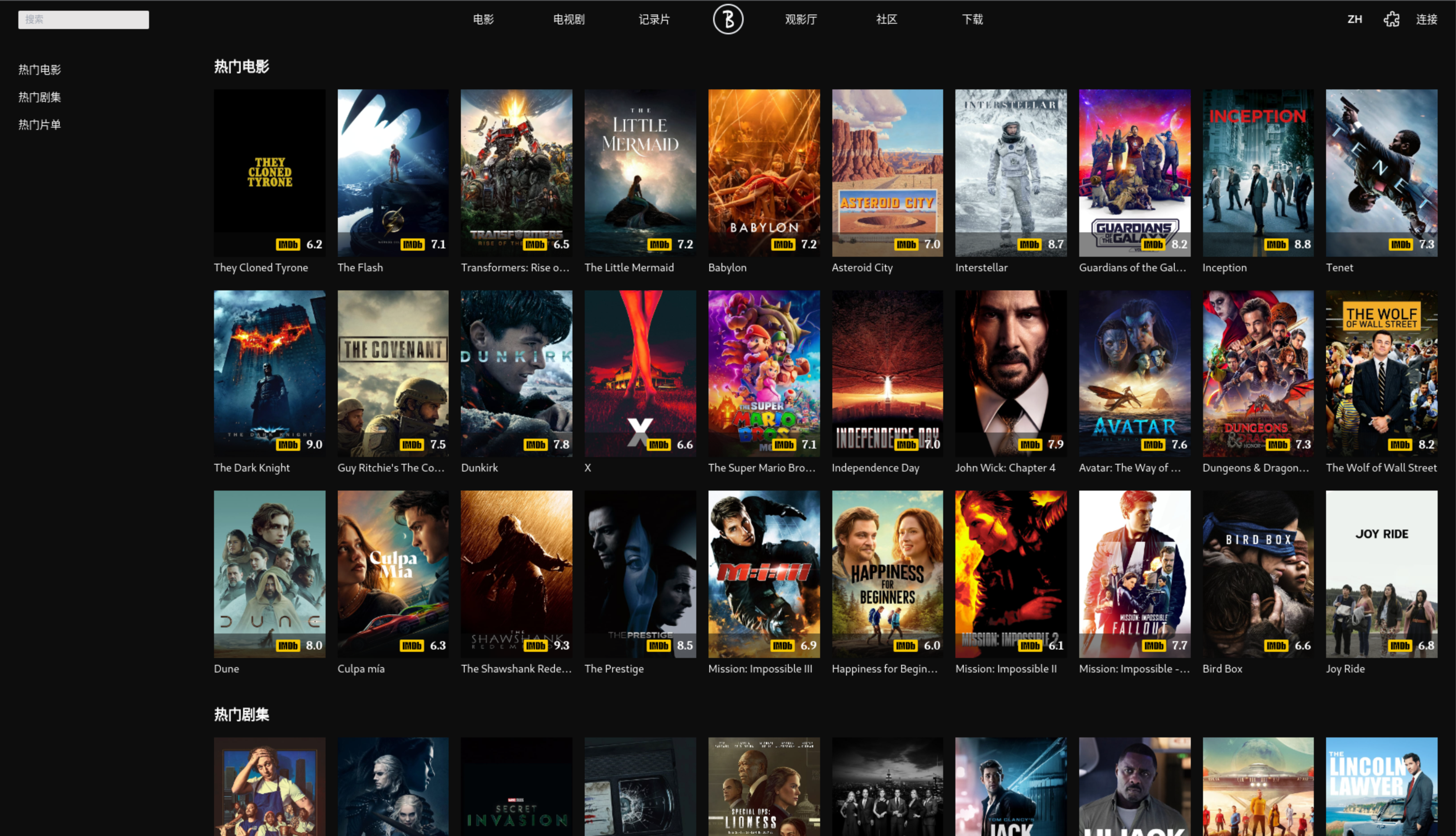 打开 BEE,首页就是近期热门的电影和电视,挑选感兴趣的电影,点击打开即可。
