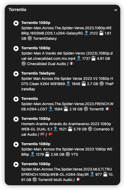 按钮,在 Torrentio 上就能看到按照配置排序好的资源列表了。
