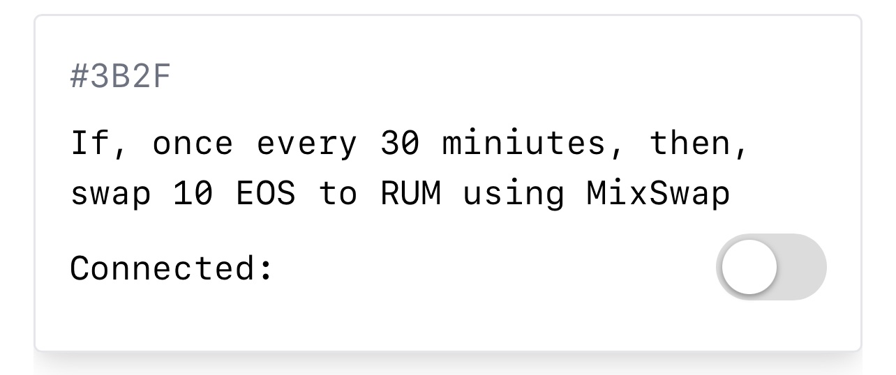 当前 IFTTB 支持的 Trigger 触发器只有两种,一种是 Datetime,时间触发器,另一种是 4swap 的价格触发器。当前支持的 Action 执行任务也暂时只有两种,一种是使用 4swap 交易,另一种是使用 MixSwap 交易。