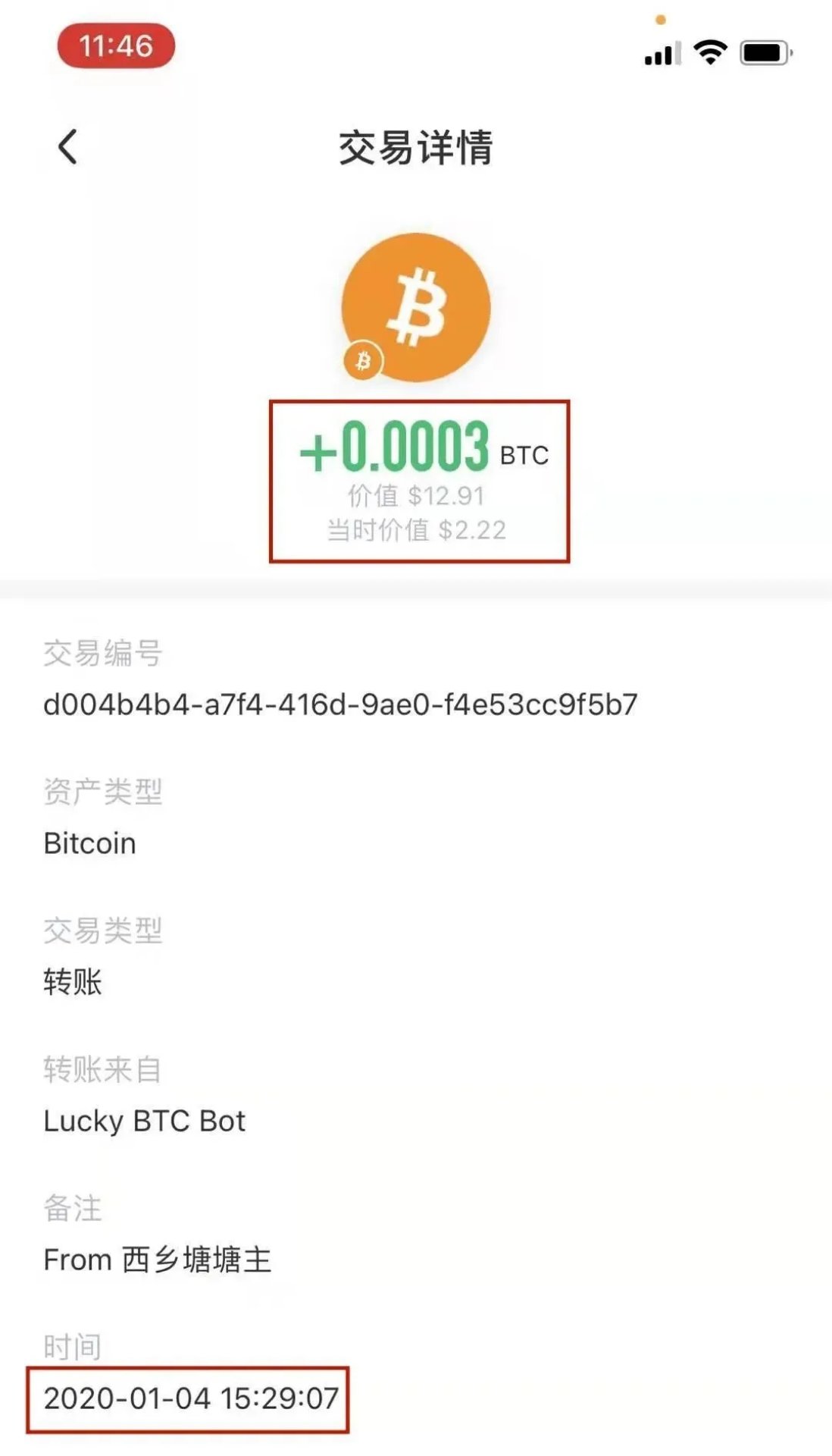 2年前(2020年1月4日),我给一个老同学发了一个数字红包,当时价值2.22美元,前几天(2022年1月6日),她查看了一下钱包,并给我截了这张图
