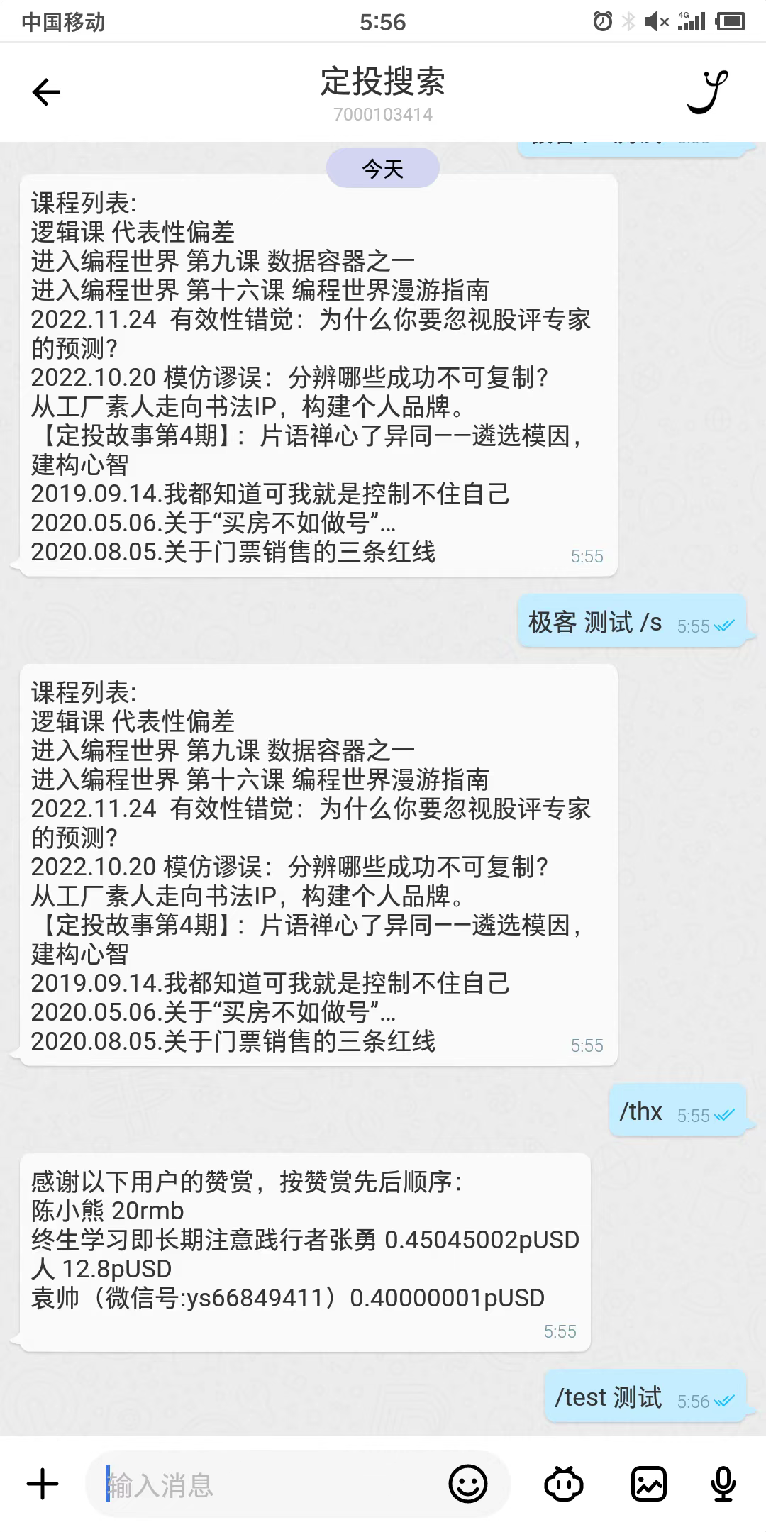 对定投搜索来说,每接收到一条消息(输入),实际上是一条命令,因此对接收的消息做了一个格式化:所有输入将格式化成 /命令 参数