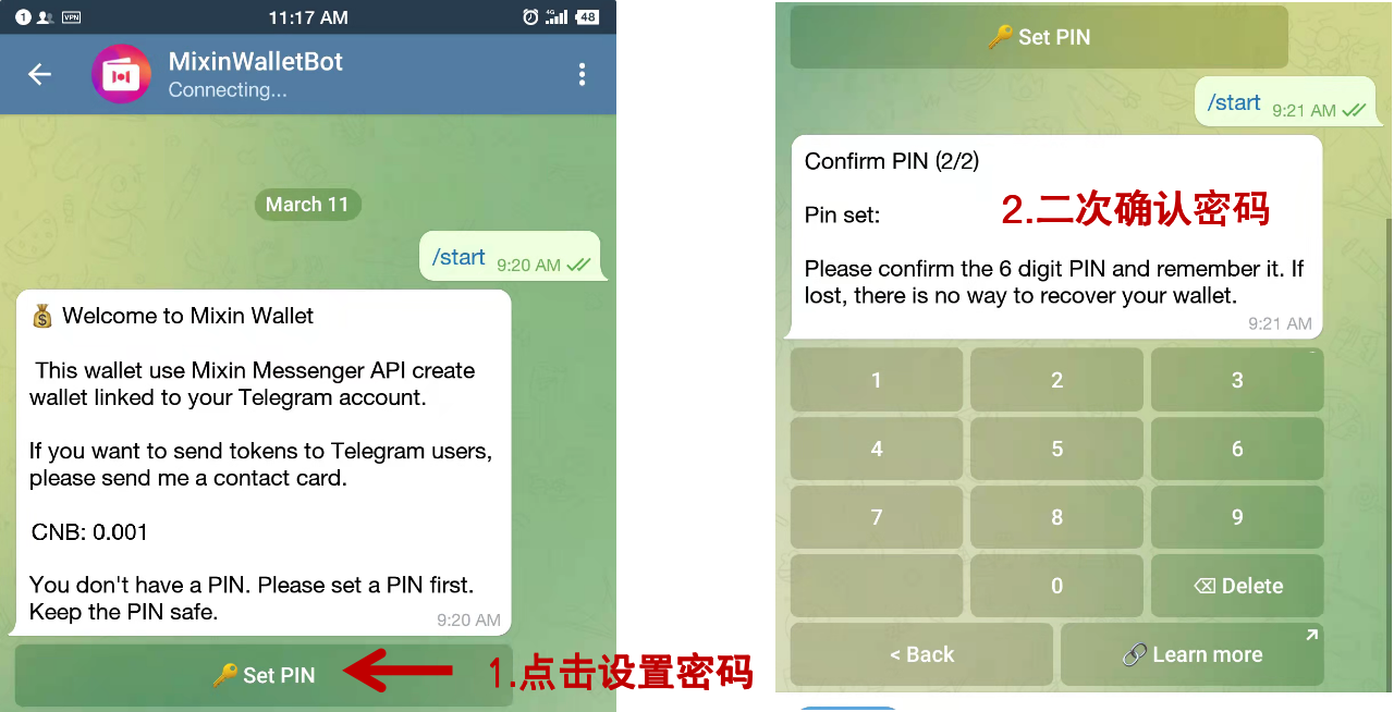 机器人是Telegram的一个特色功能,Telegram也开放了机器人API,开发者可以开发各种机器人。MixinWalletBot机器人是Mixin团队开发的,该机器人可以使用Telegram账户创建你的数字货币钱包,并使用6位PIN码管理你的资产。