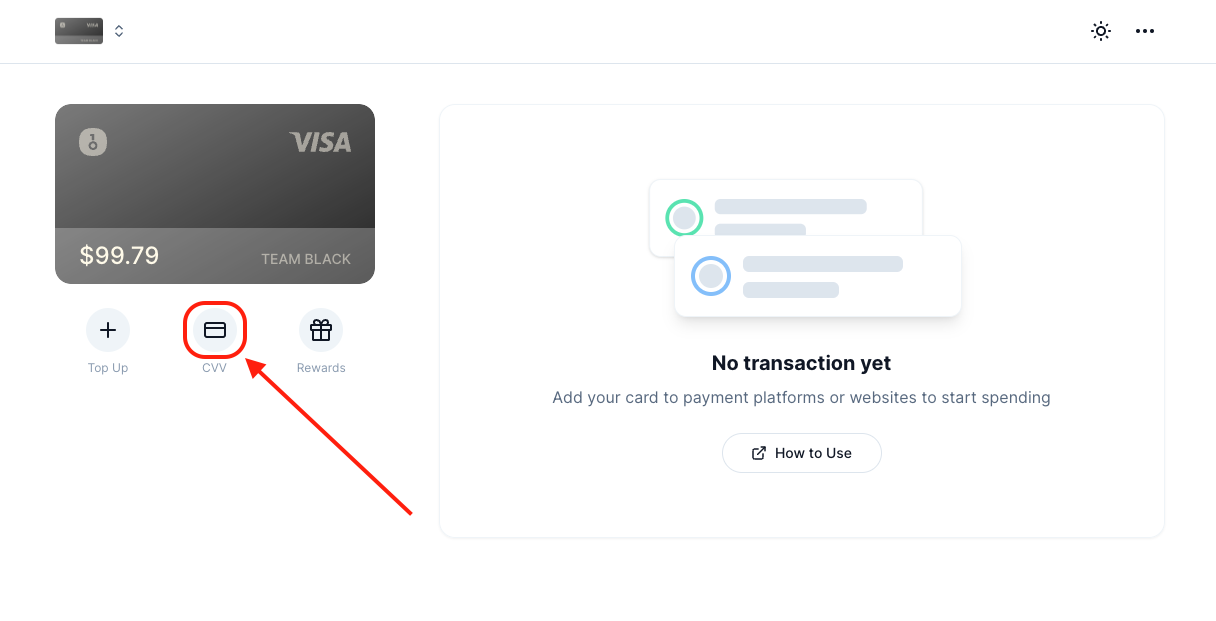 充值完成后,回到账户主页,点击 【CVV】
