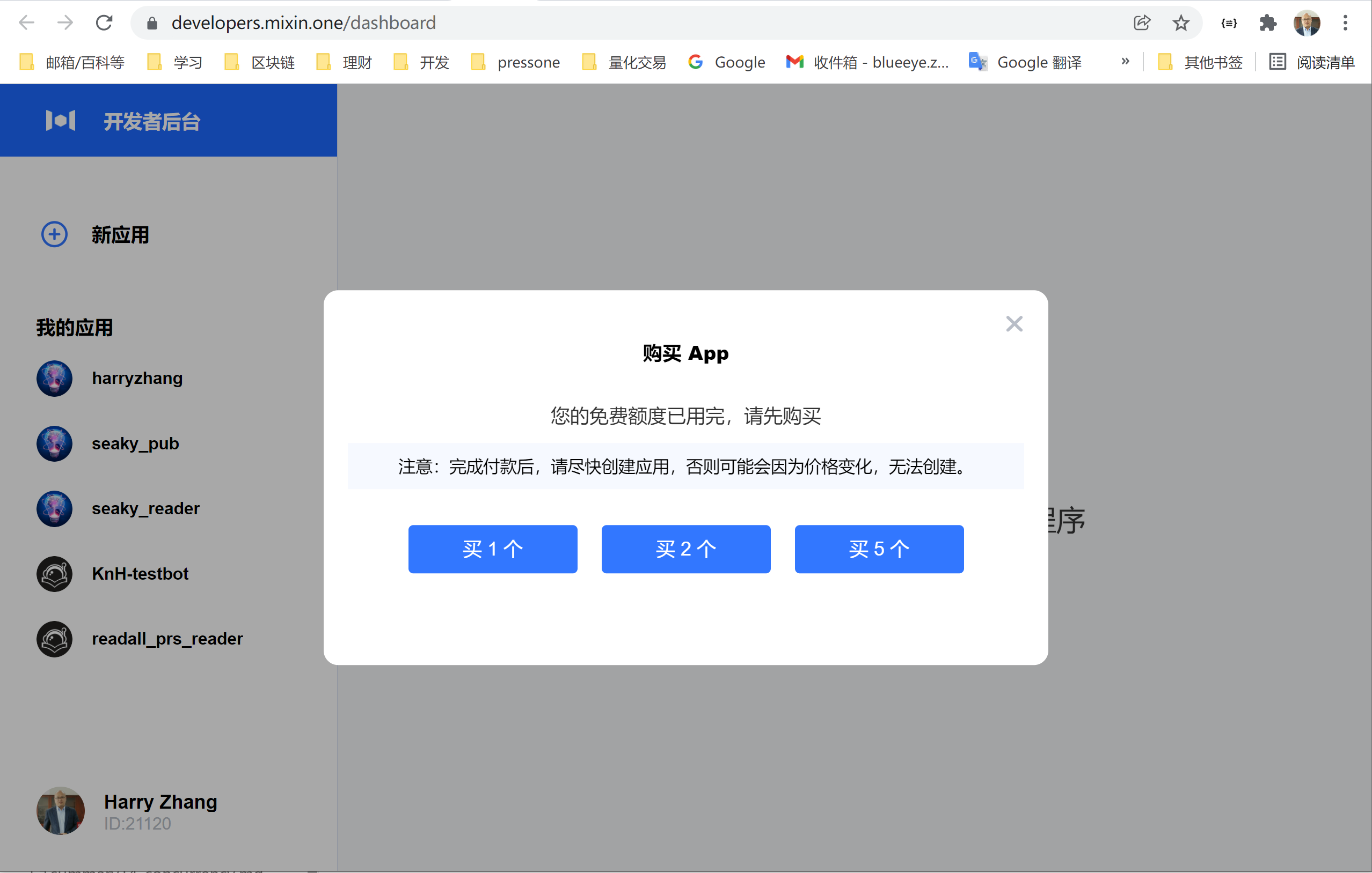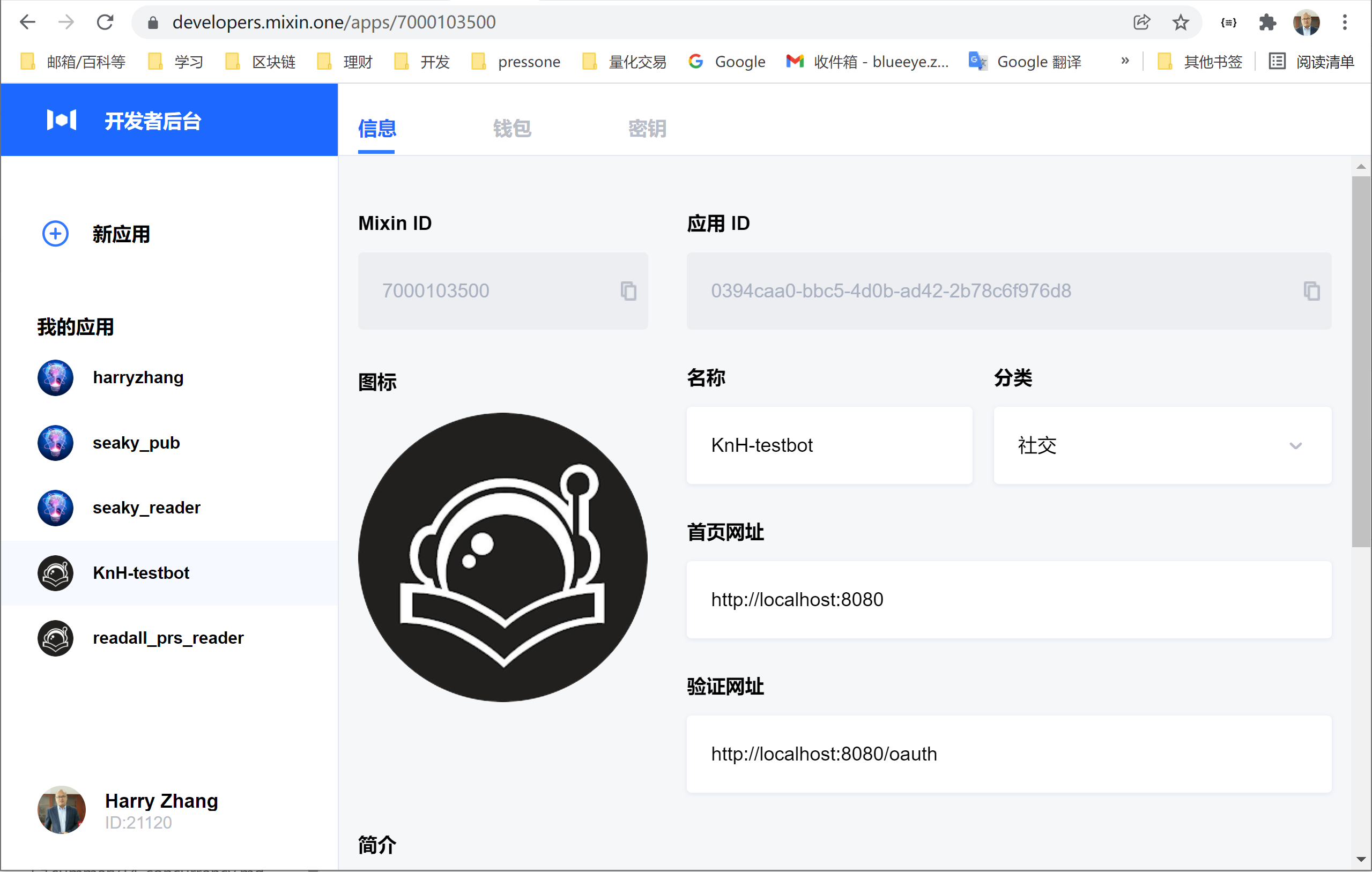 进入 Mixin开发者后台 创建新应用: