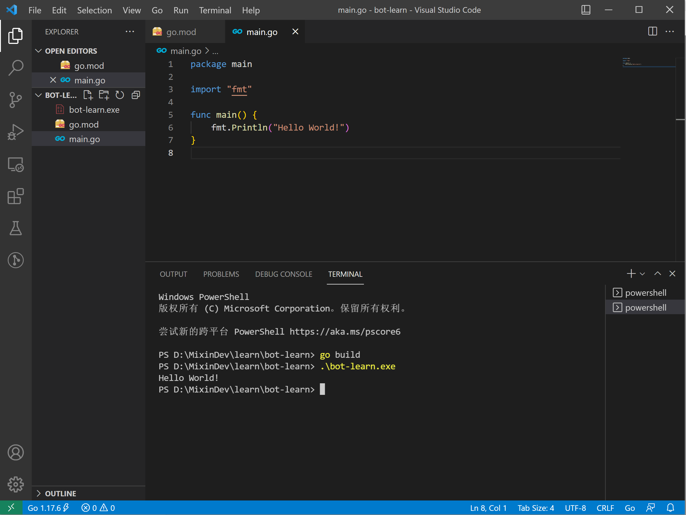 > .\bot-learn.exe //执行可执行文件,输出执行结果