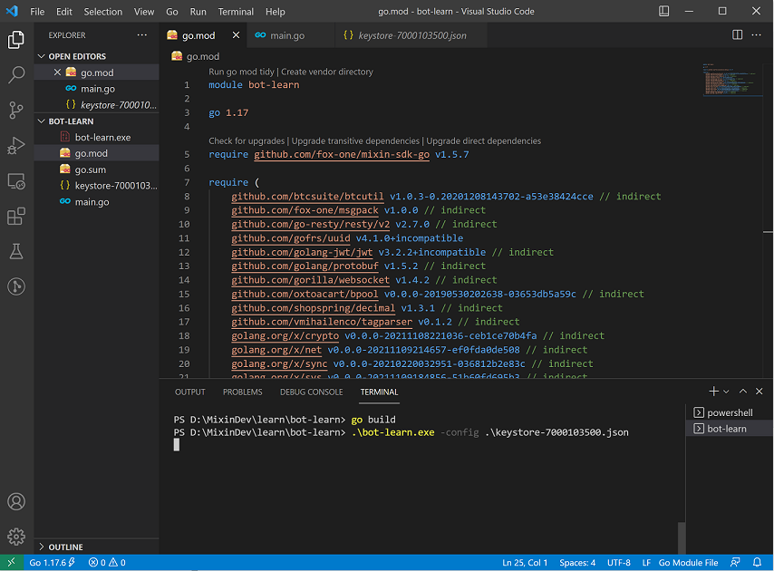 $ go mod init bot-learn //创建bot-learn项目