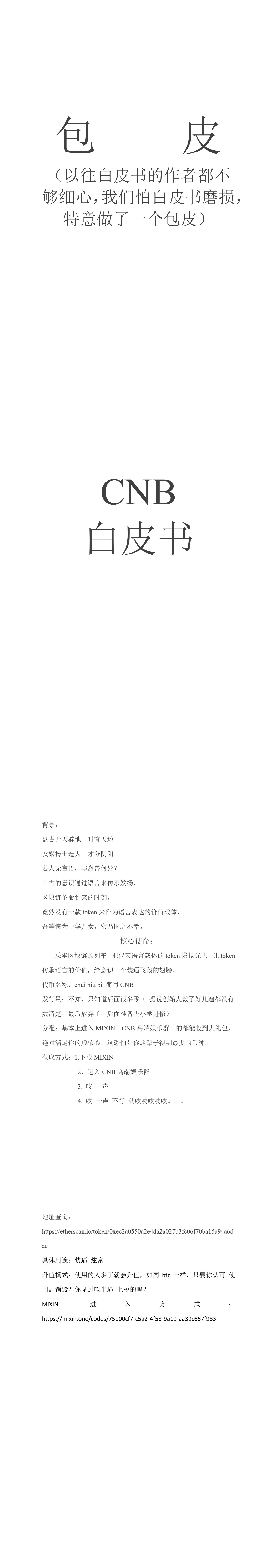 注:无项目方无团队也无任何人为CNB背书,以上仅仅是CNB到目前为止的历程,也都是由大量Mixin老用户共同见证的。透明的不透明的都摆在面上,剩下的就是大家的自由了。