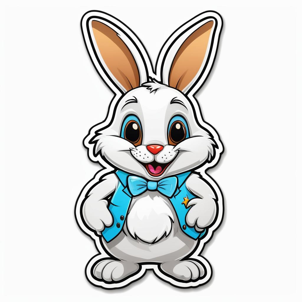 /i sticker design, anthropomorphic rabit hello, cartoon style animation, 2D, polished, white background –ar 1:1