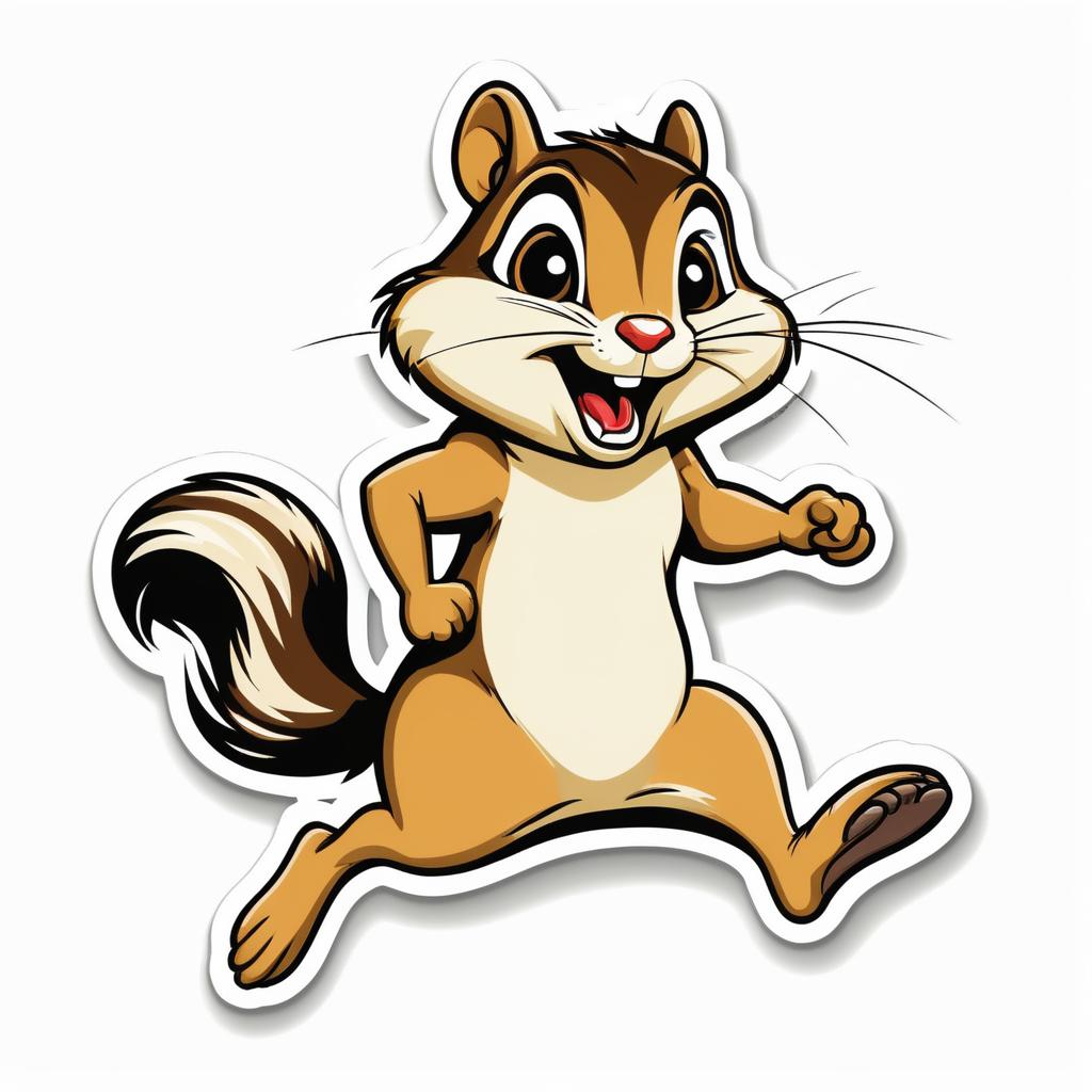 /i sticker design, anthropomorphic chipmunk running as fast as possible, in a rush, running to make it on time, worried, anxious, comical, white background –ar 1:1