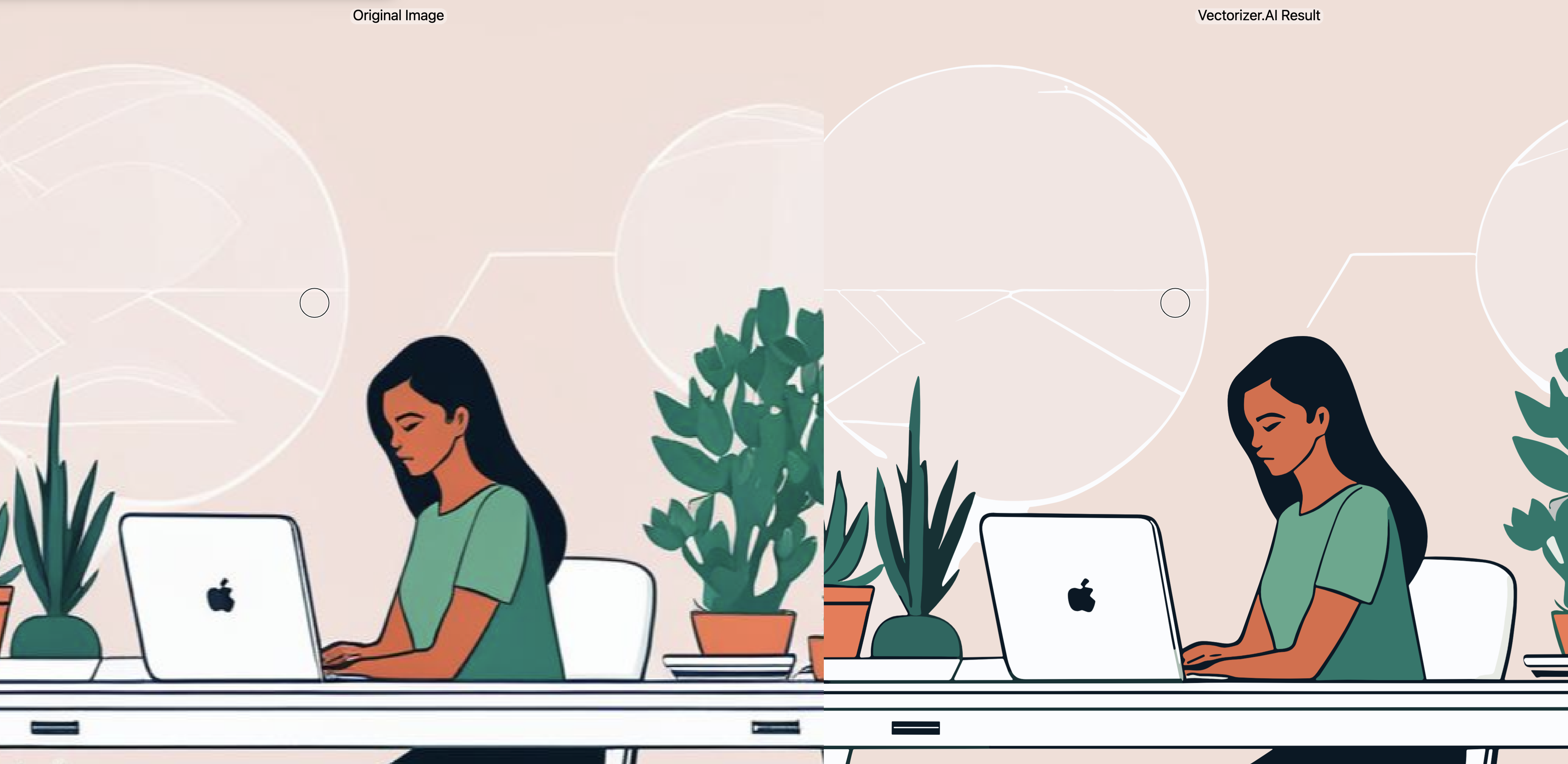 转换之后得到的图完全是矢量的图形,可以进行无损缩放,从上面就可以看到右边是转换之后的,无论如何放大都是清晰可见,原图放大就糊了,下载矢量图形之后还可以用设计工具按自己的预期来进行二次编辑,几分钟就可以产出一张高质量的插画。