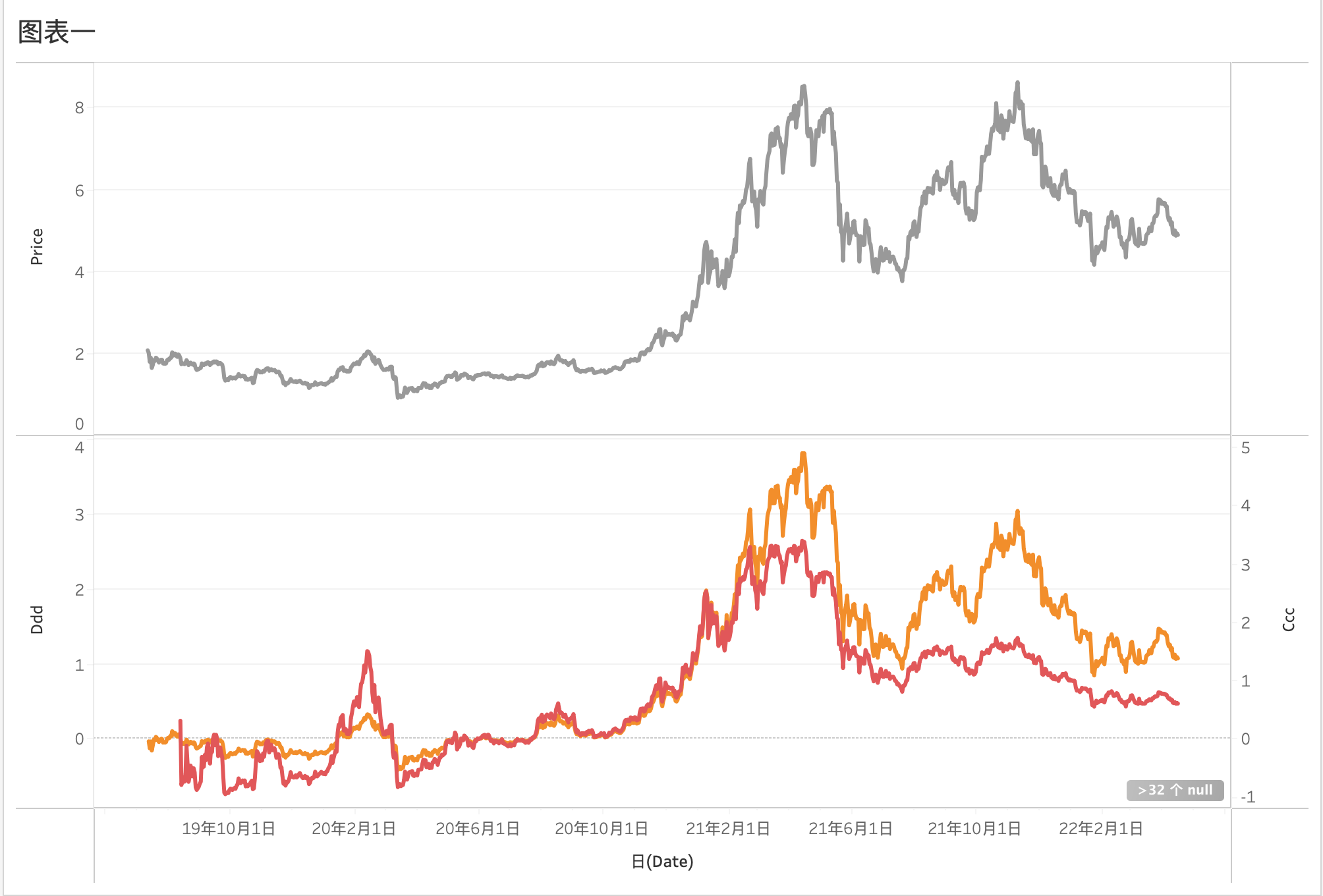 上面灰色是BOX的价格曲线。下边,橙色的是基准收益率,红色的是年化收益率。(红色曲线开头一小段30天,没计算年化收益率,天数太少我觉得意义不大)。