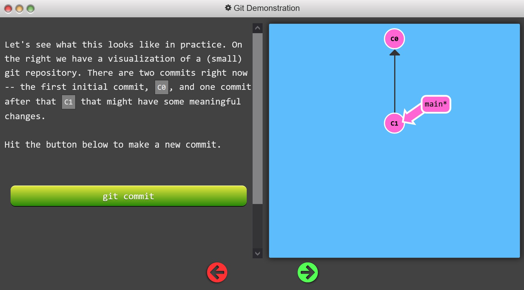 接下来在左下角的终端中键入 `git commit`两次: