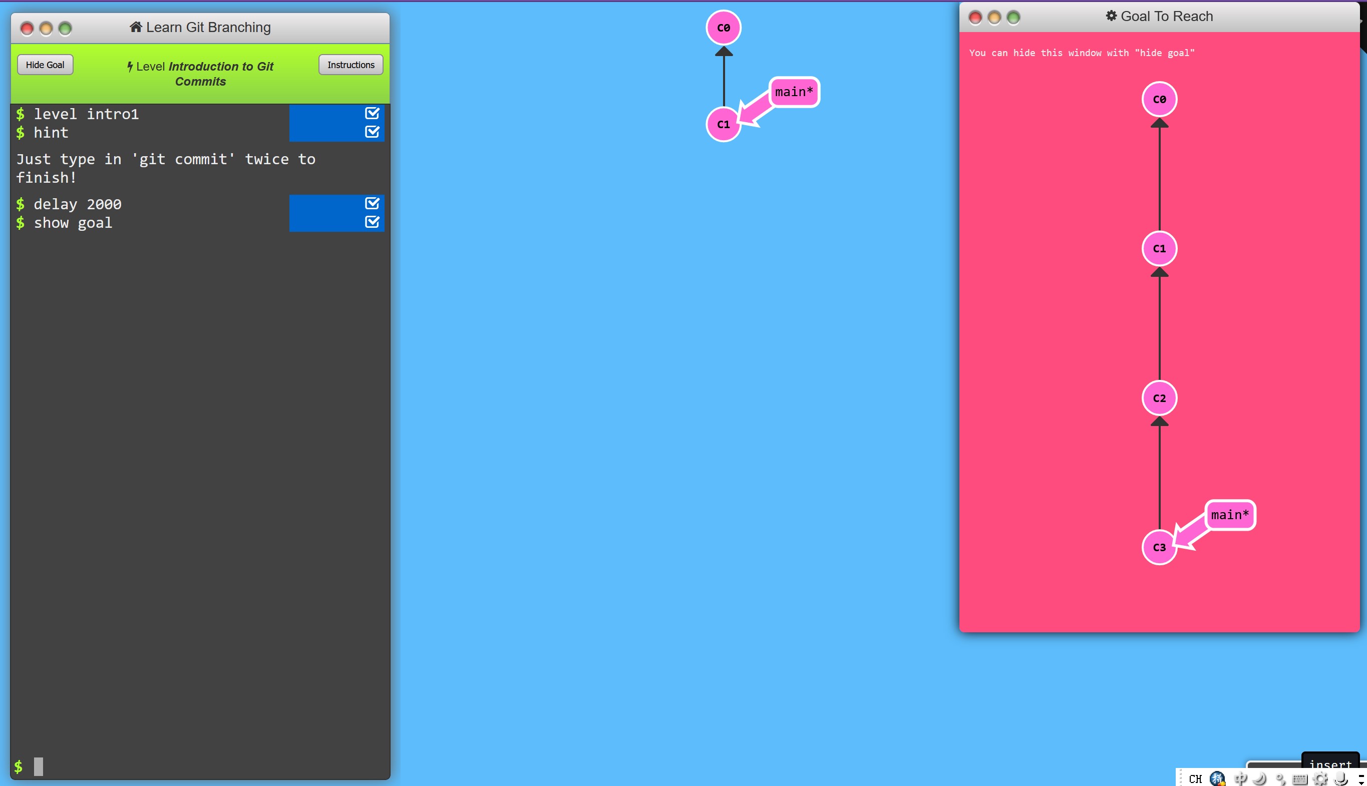 任务分析:对比一下两张简图就知道,我们还需要做两次提交,才能从 C1 到 C3.