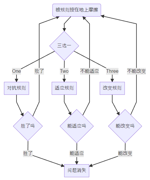我们渐渐习以为常了,不再关心这些规则合理不合理,我们仿佛接受了世界就是这样的。碰到规则,就顺着习惯随波逐流,要不就是挣扎一下做一个选择: