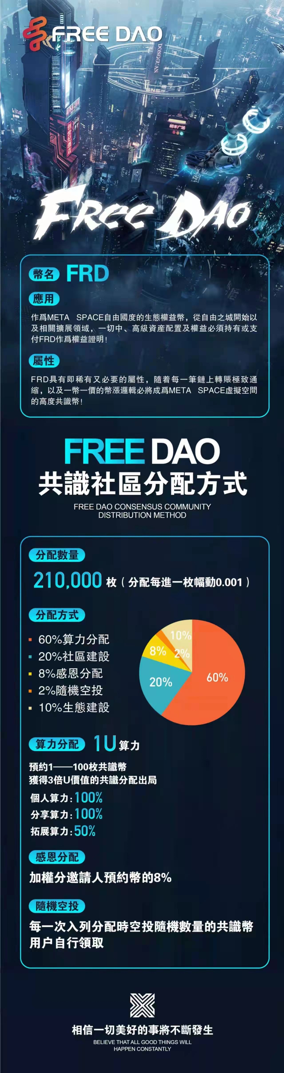 FRD是自由之城的生态权益币,总量仅有21万枚,其分配方式如下: