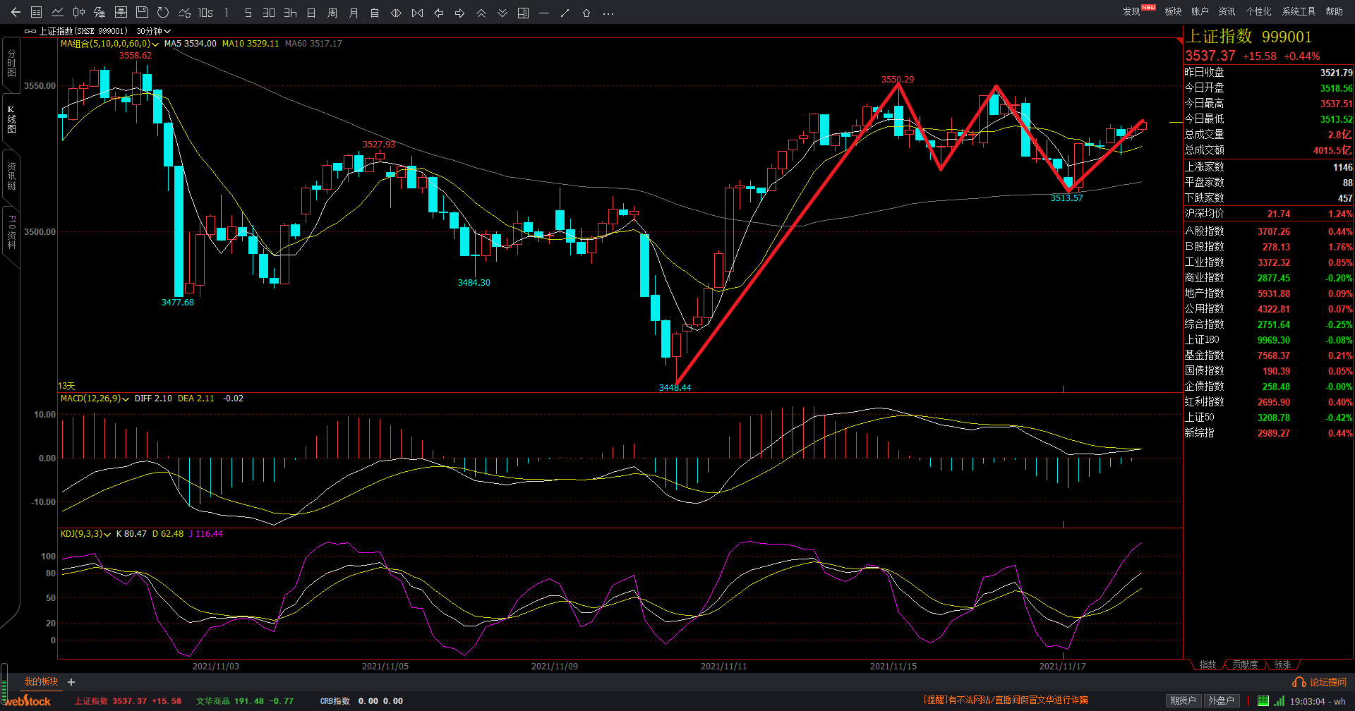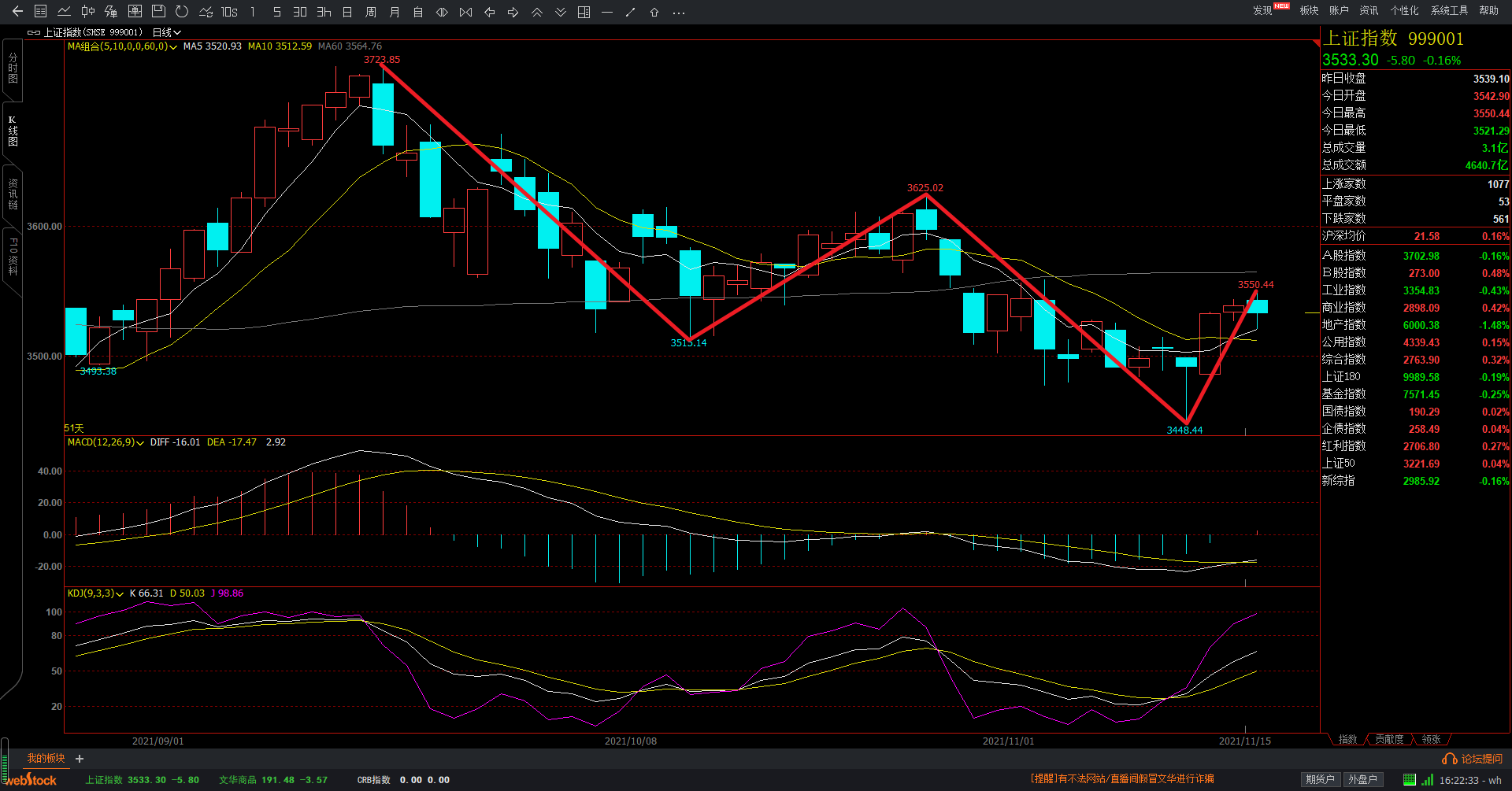 一定留心前面所说日线60线对日线上笔的影响,目前点位是3564附近。