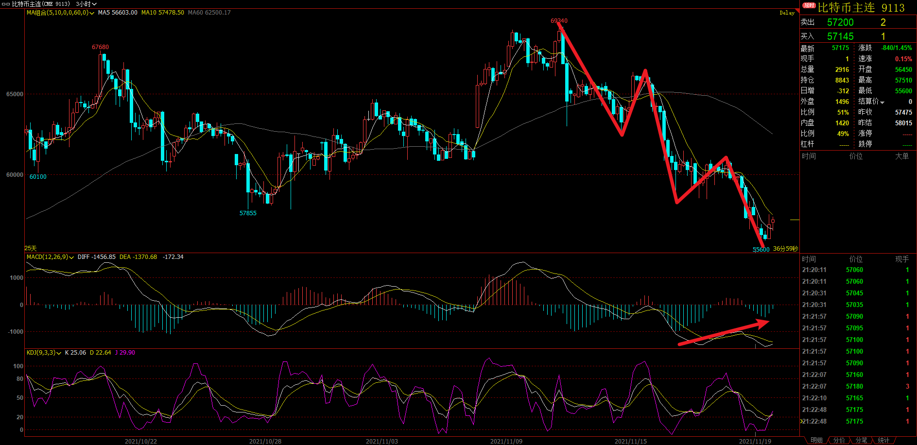 最后一段对应到3H图,表现为趋势类级别背驰,也就是55600有望成为底。