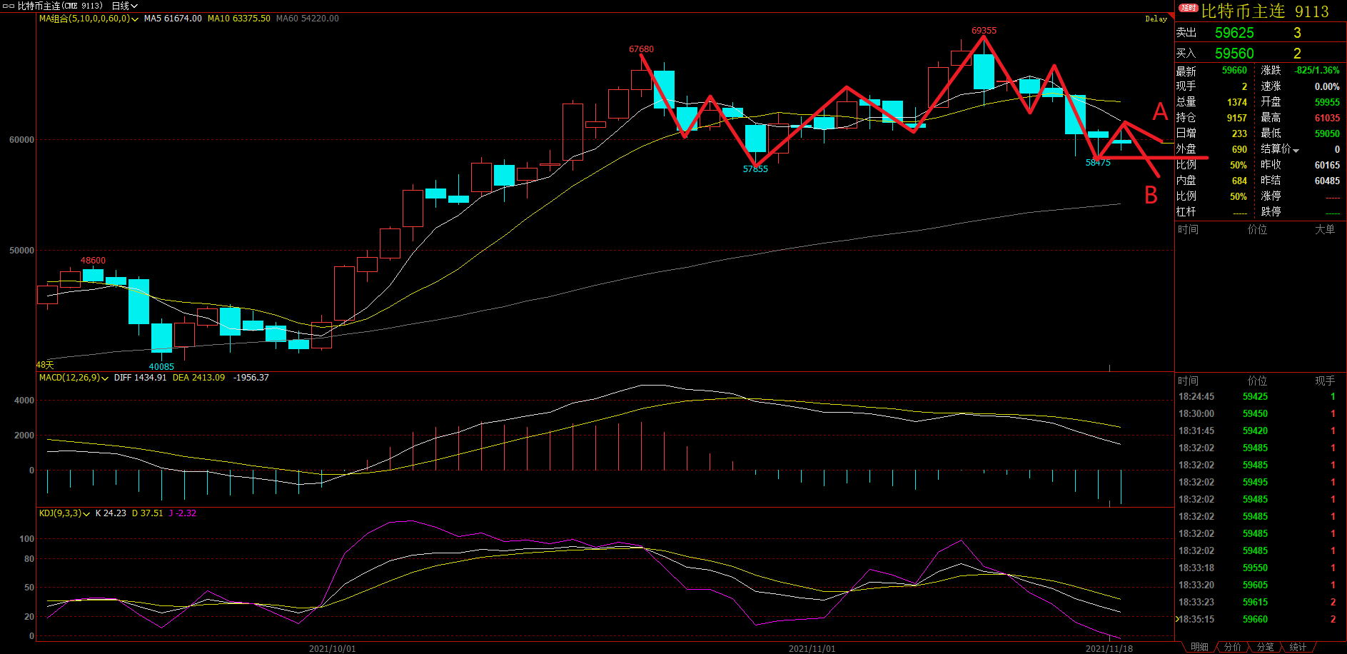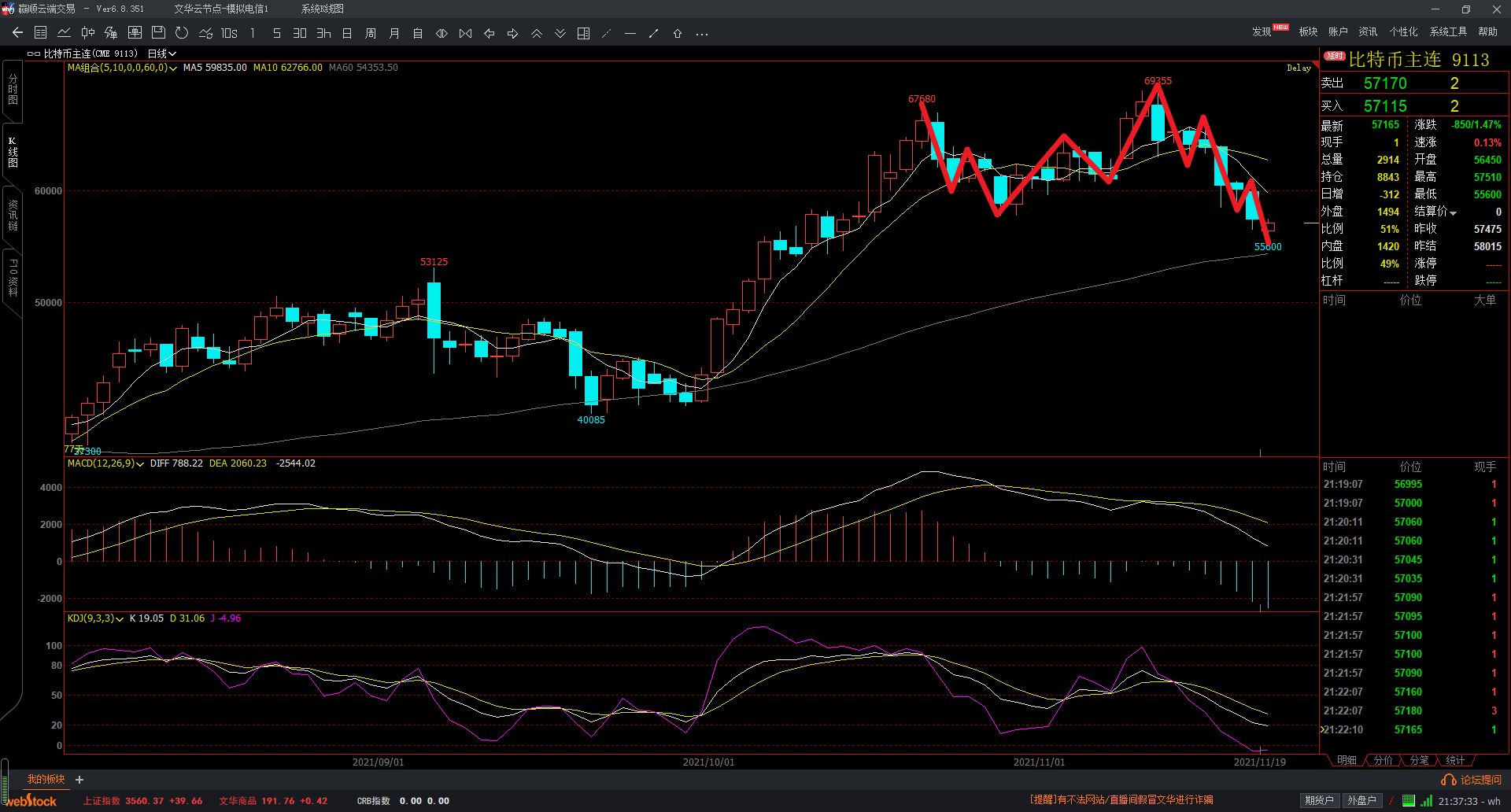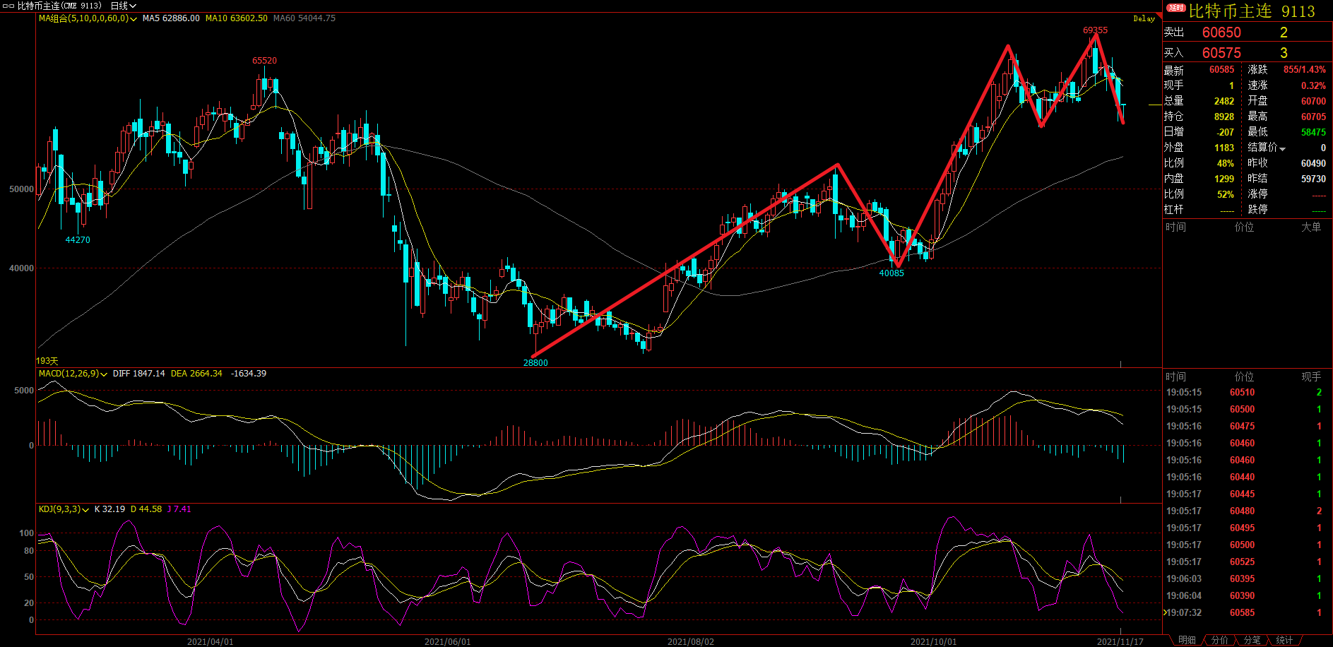 今天,稍微说下BTC,使用的是文华财经中的比特币主连,所属市场是芝加哥CME