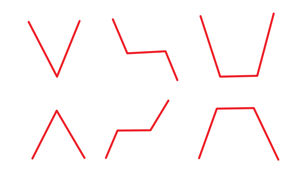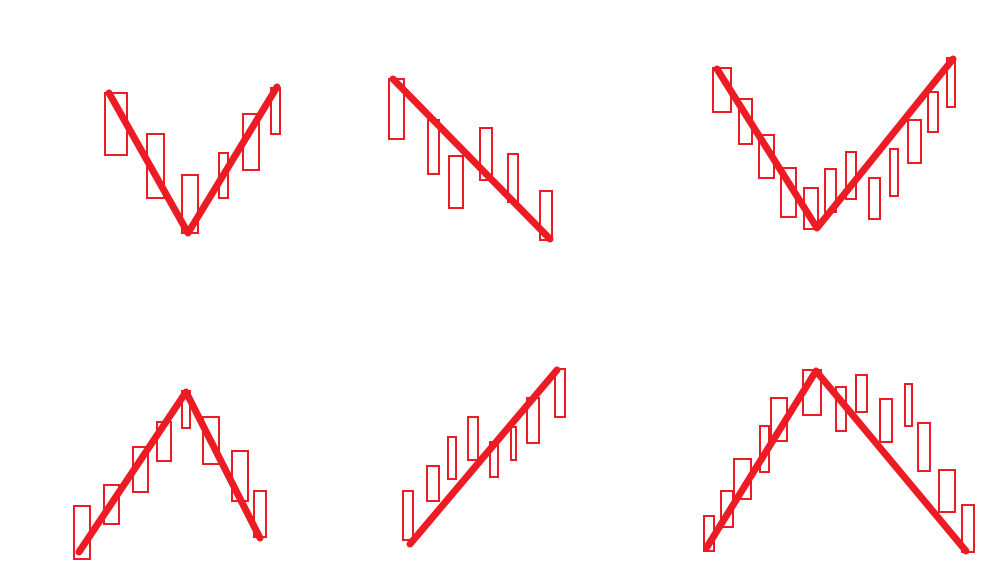它们是:下跌+上涨,下跌+盘整+下跌,下跌+盘整+上涨,上涨+下跌,上涨+盘整+上涨,上涨+盘整+下跌。