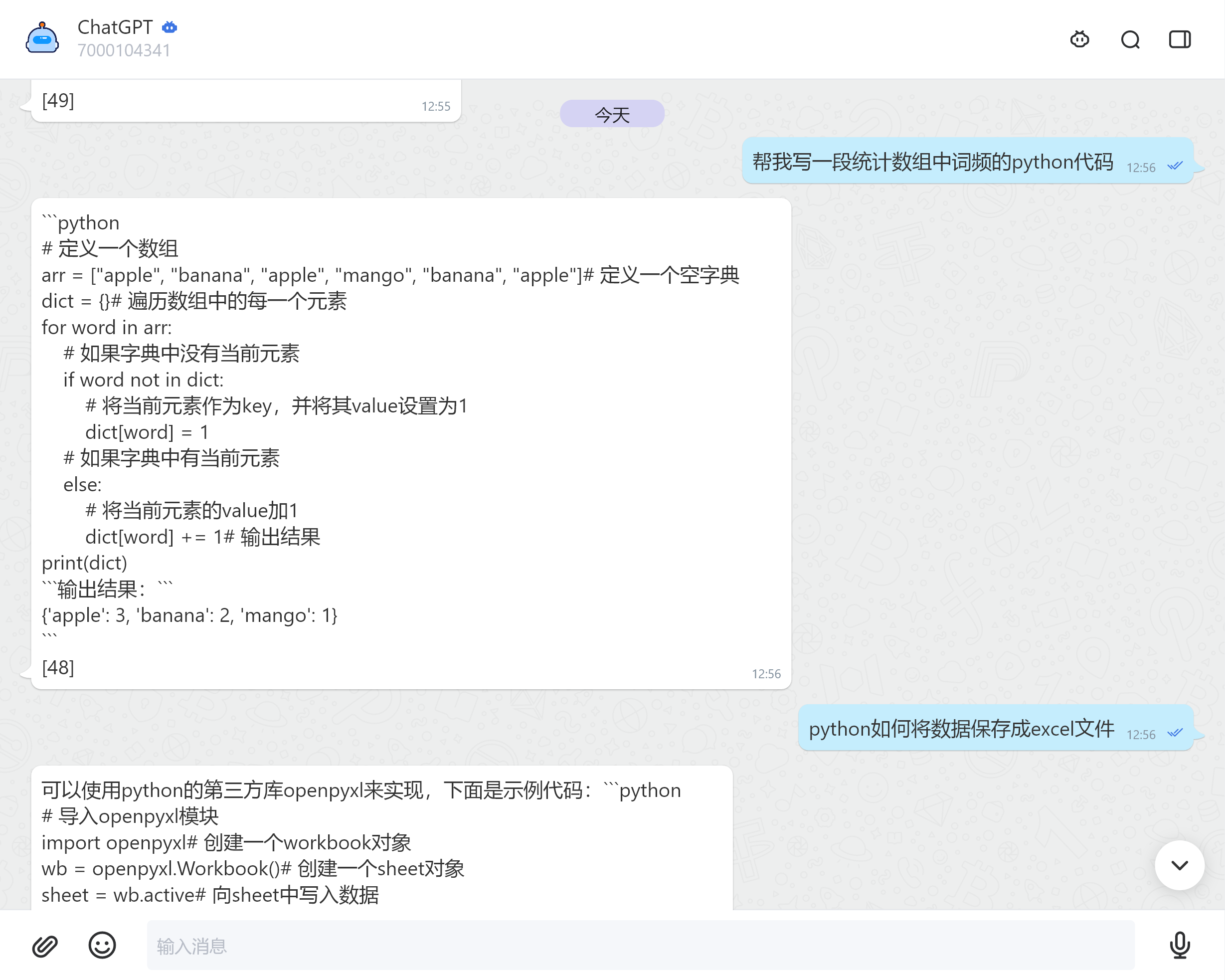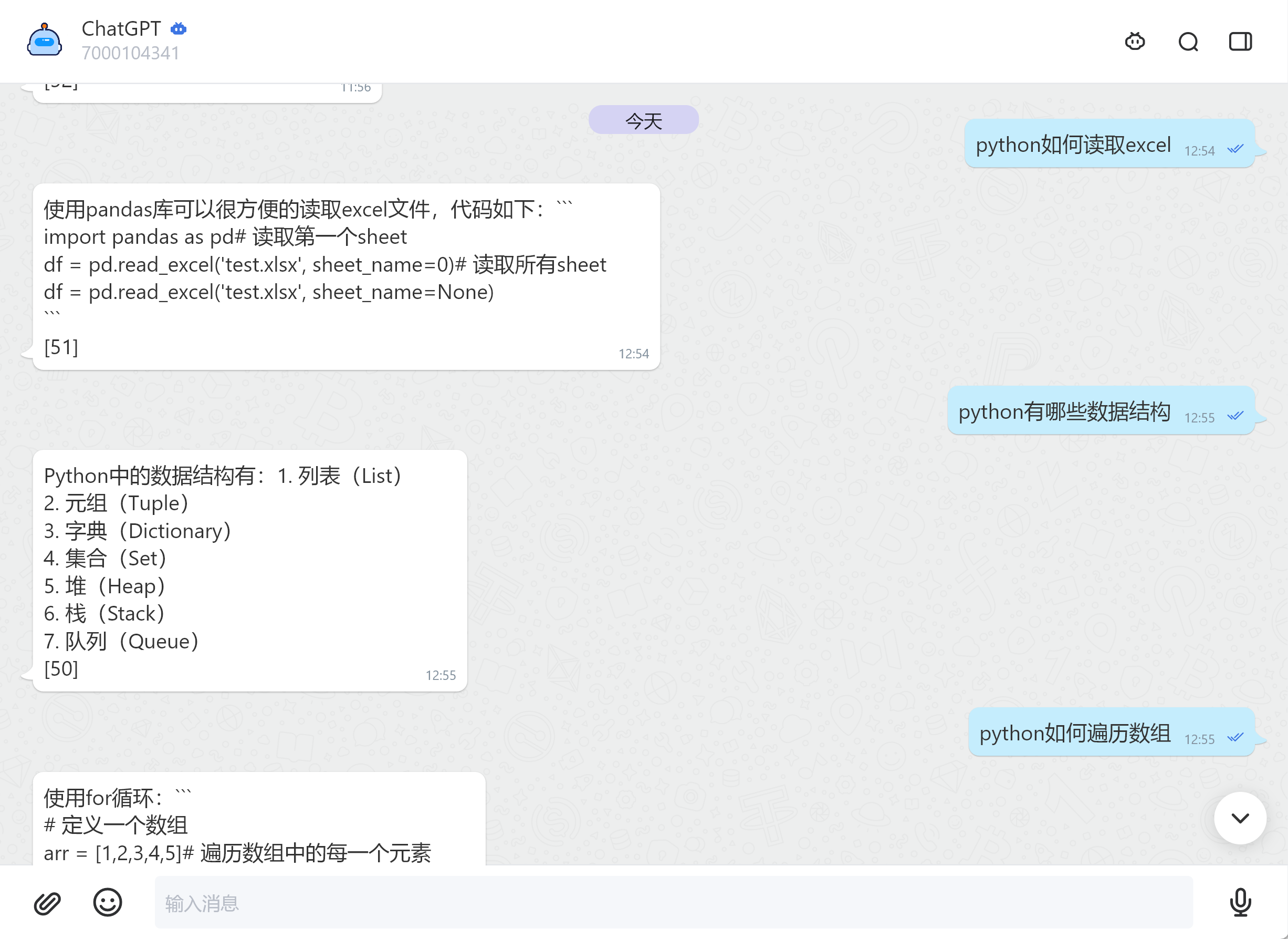 经过一顿折腾,ChatGPT机器人1.0版本算是上线了,机器人ID是:7000104341,相比最开始的简单功能实现,增加了使用次数限制,每日重置次数,打赏后使用限制解除等一些功能。