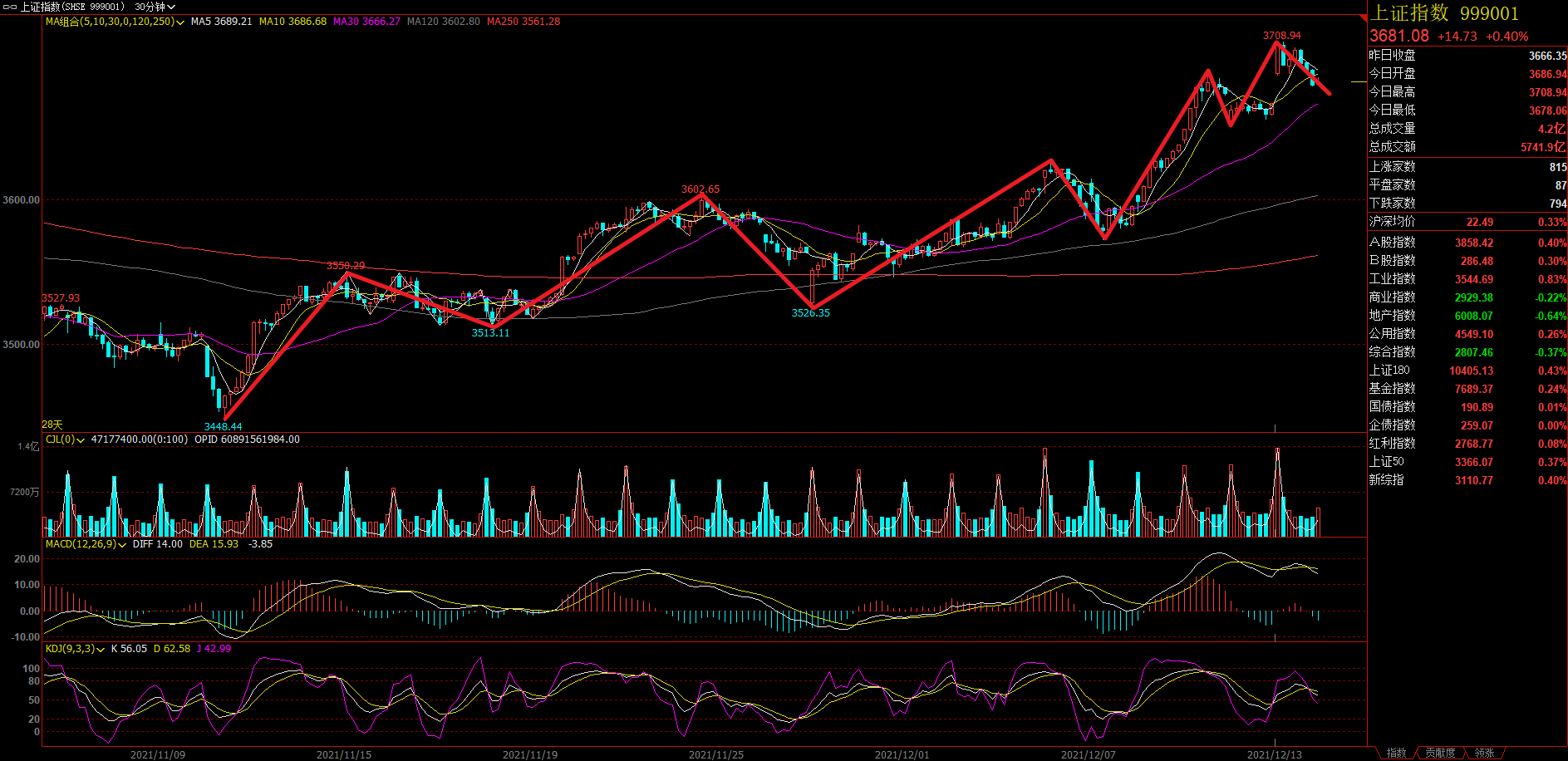 分解就把3708做高点,当日线下笔处理,至于发展成3段背驰结束,还是5段以上走标准中枢,继续观察就好了。