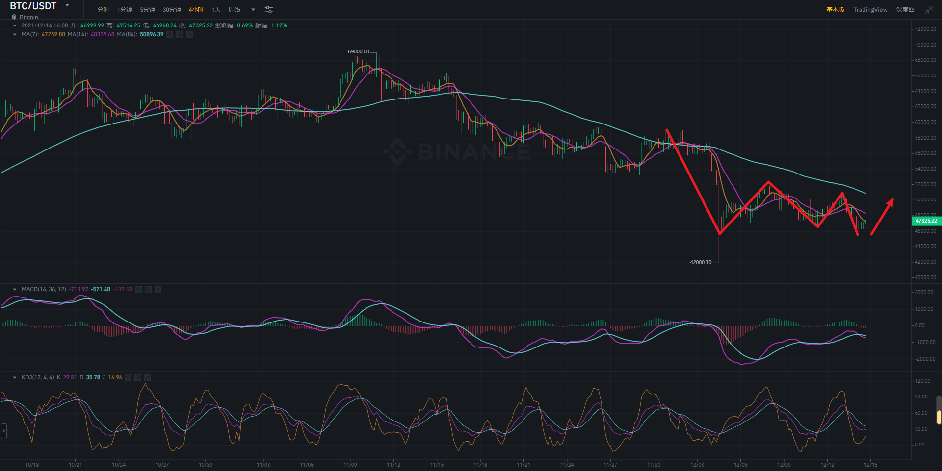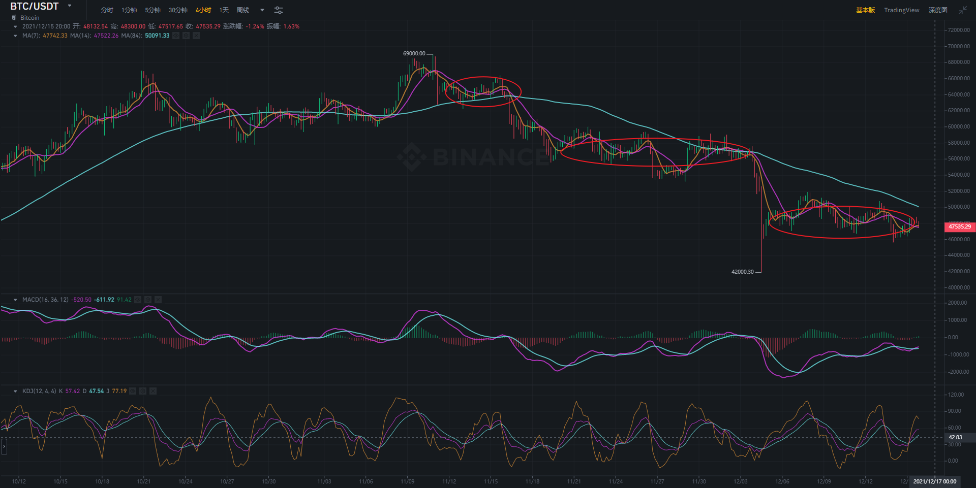 4H图,依然走的很慢,震荡中,4H的84周期线,很快就要有方向了,耐心等。