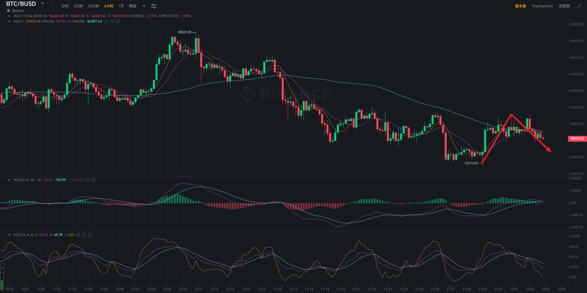 Binance,4H,调整完参数的图,看着舒服多了,跟昨天预期一样,后面就看新不新低。