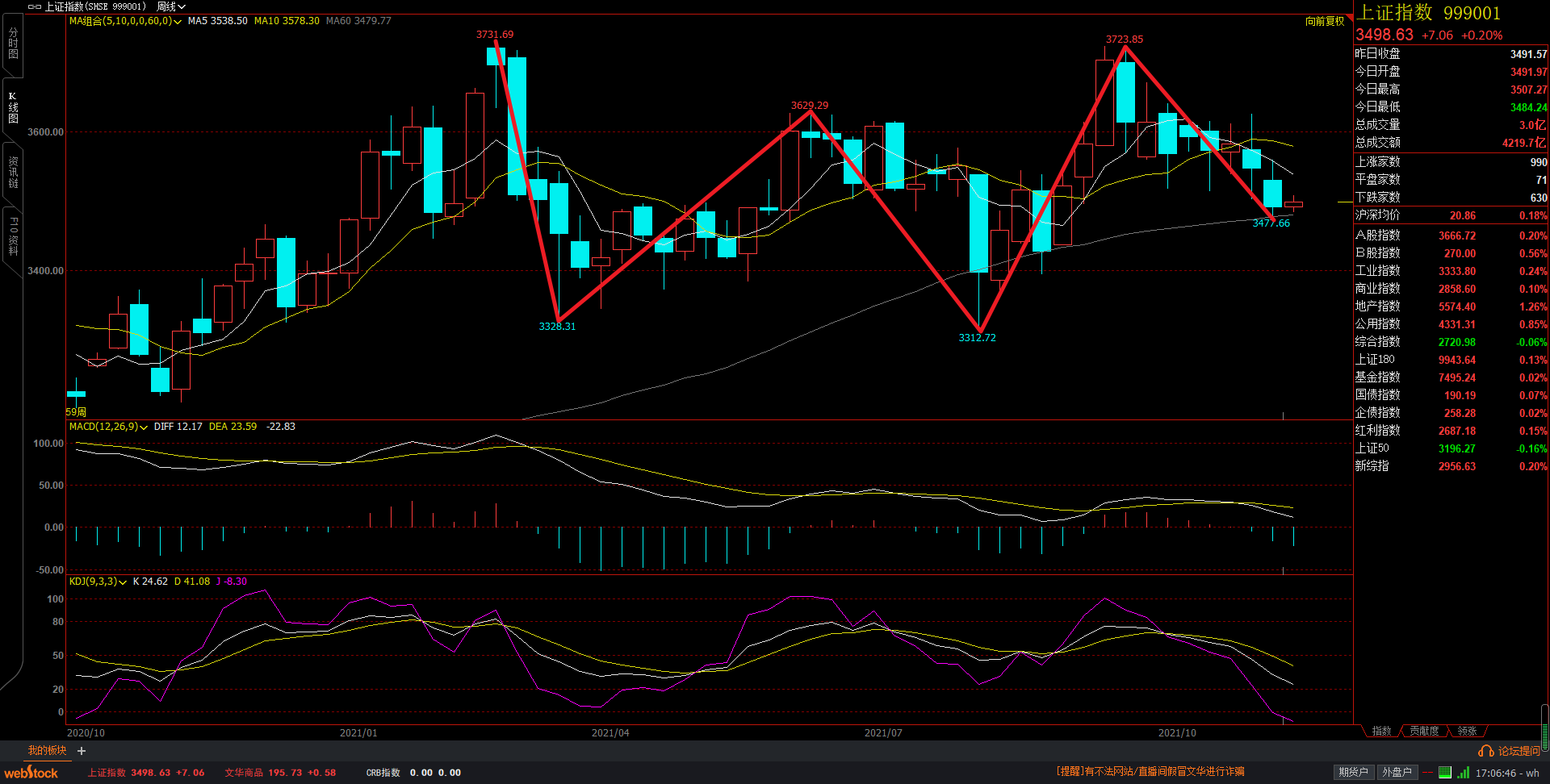 上图,周线图,当前的周线下笔为3723.85开始的下跌,下跌结束了吗?