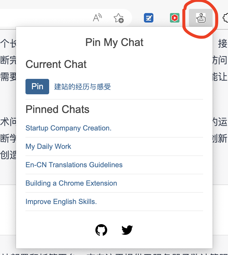 魔法世界里面,邓布利多似乎可以存储很多段记忆的,看来魔法冥想盆也有对不同记忆数据的完善管理。而 ChatGPT 这点做的不好,OpenAI 可能太关注底层技术了,交互界面做的非常简单粗暴。比如我和 ChatGPT 聊了20多30多个聊天记录,每次都要翻很久才找得到想要的。而常用的聊天也就那么5,6个,于是我就自己来做了个聊天记录的置顶功能: