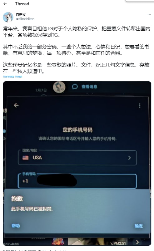 Telegram 最大的问题在于,它依然是用手机号码登录,并且官方封禁账号并不需要任何理由,就算这个账号没有做出任何违反规则的事情。在我的观念里,就算我违反平台的规定,平台也不应该有封杀我账号,让我不登录账号的权力。