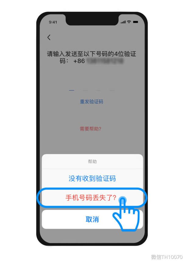 1、输入原来的手机号进行登录,由于手机已丢失,无法收到验证码,所以请静待 60 秒后,点“需要帮助?”