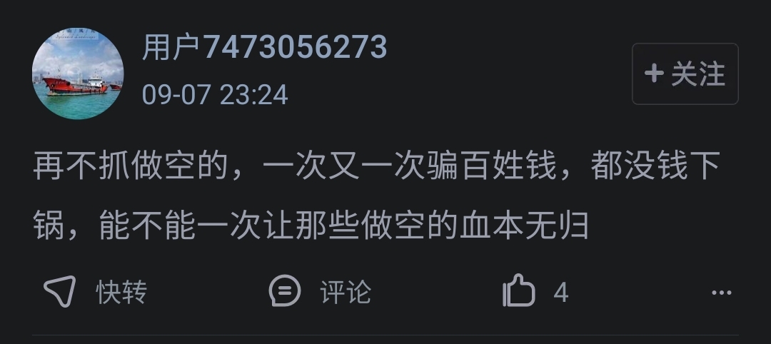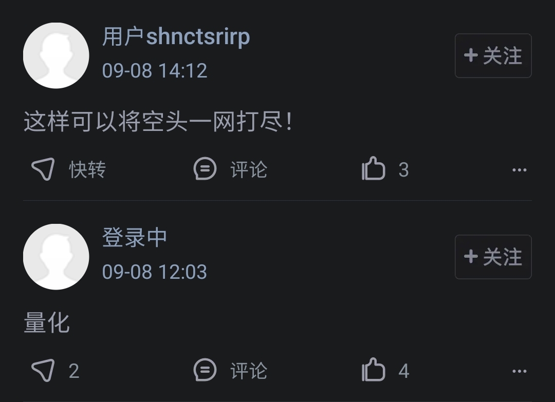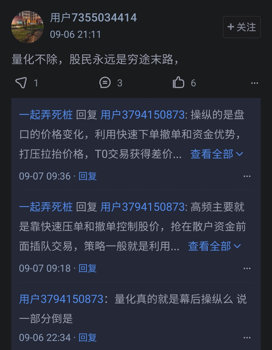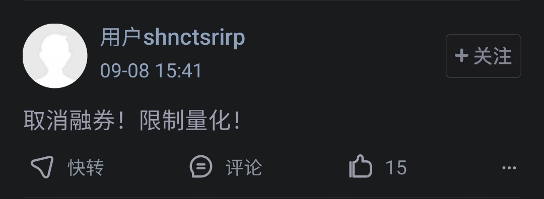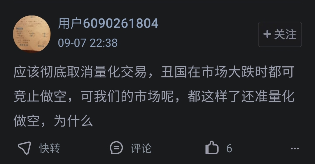 看了这么多评论,其实总结起来,他们的诉求大概可以归纳为两个:一、把做空(融券)的都抓起来;二、把量化交易都抓起来。似乎目前股市跌下跌,就是被这两个罪魁祸首害的,罪魁祸首一除,股市就能立刻起飞。
