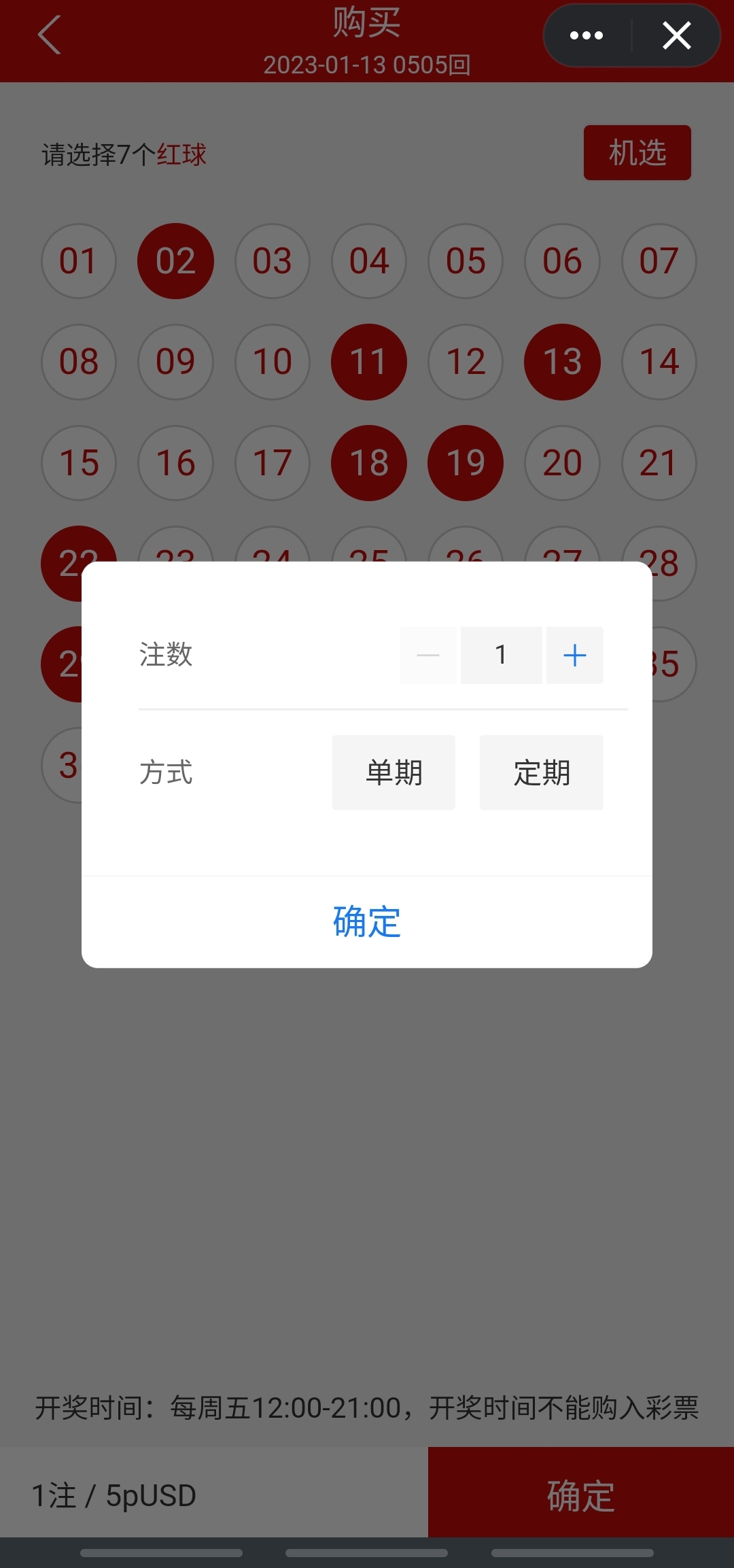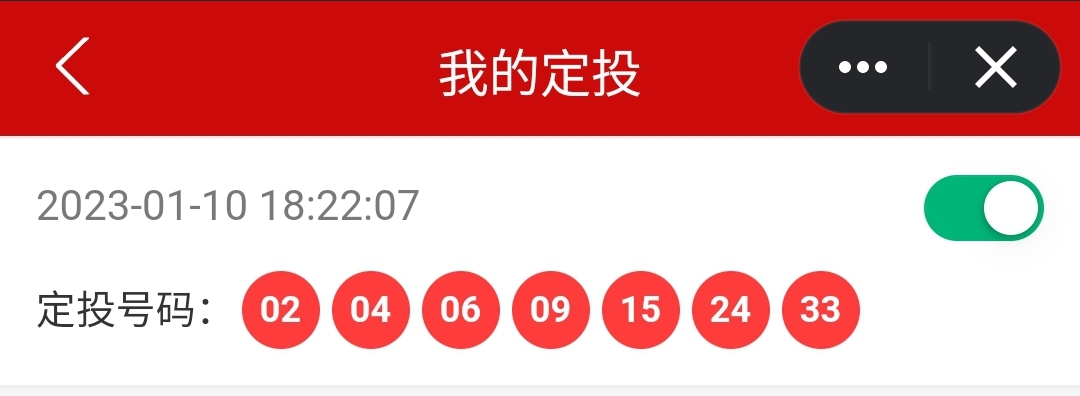 如果您选择了定投的话,我们会在您下注的第二天上午8点为您确认该订单,并在未来每个周六上午8点为您下单,一直购买同样的号码,牢牢锁住中奖概率!若您开启了定投的话,请保证余额的充足,以免错失机会哦。