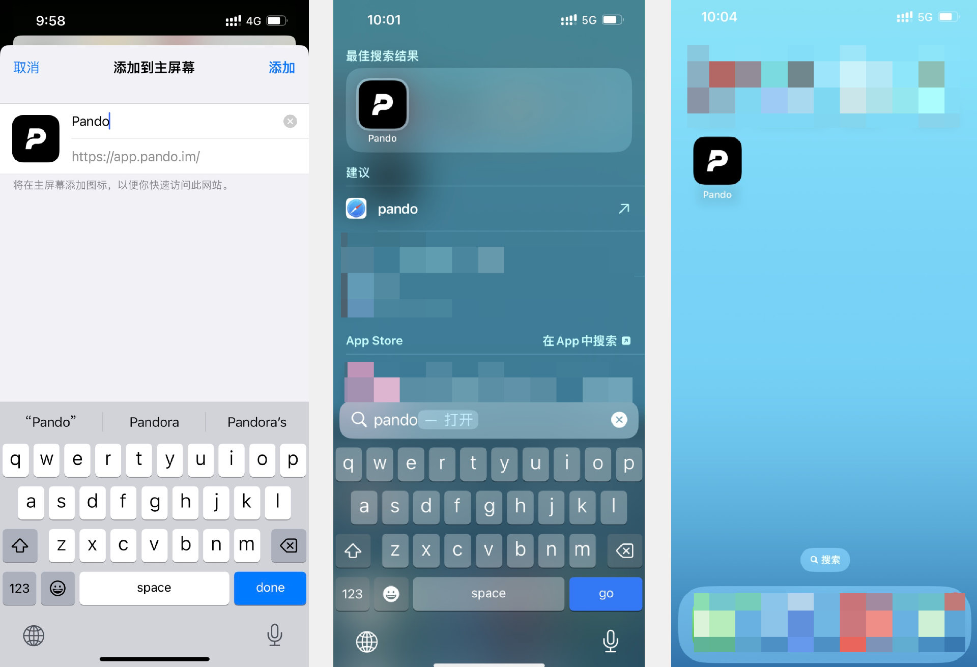 安装到手机主屏幕后,搜索 “Pando” 会在 app 菜单里找到 Pando PwA 。点击进入后,就可以像使用 app 一样使用 Pando 了。