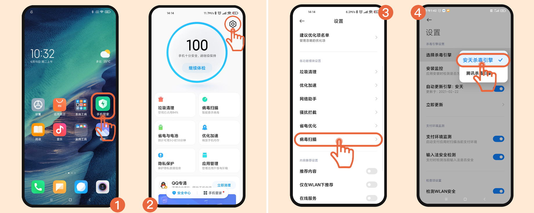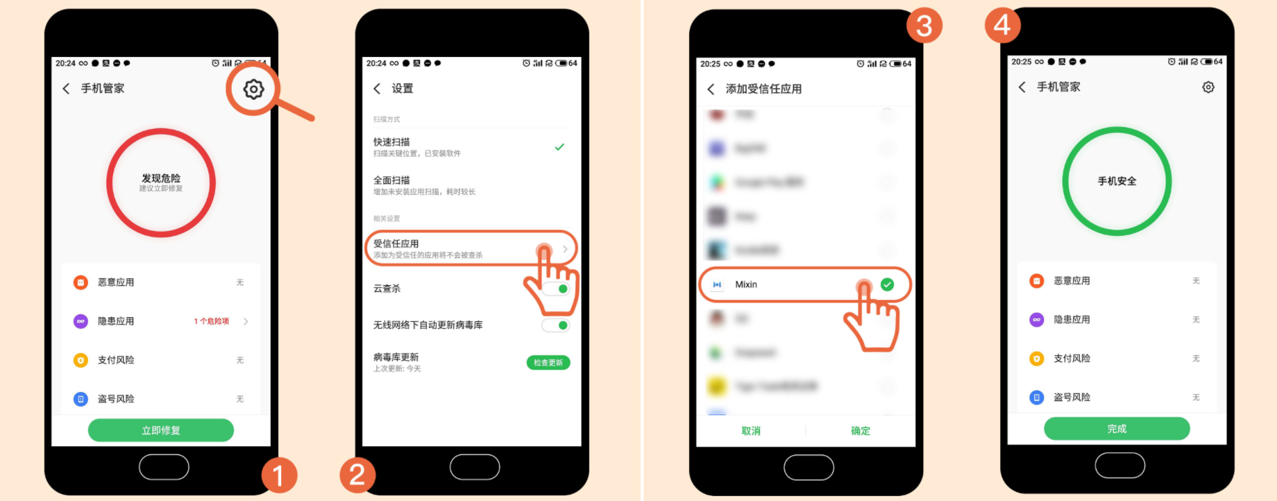 一般是手机管家或者手机安全软件设置的问题,可以尝试以下图示中的操作: