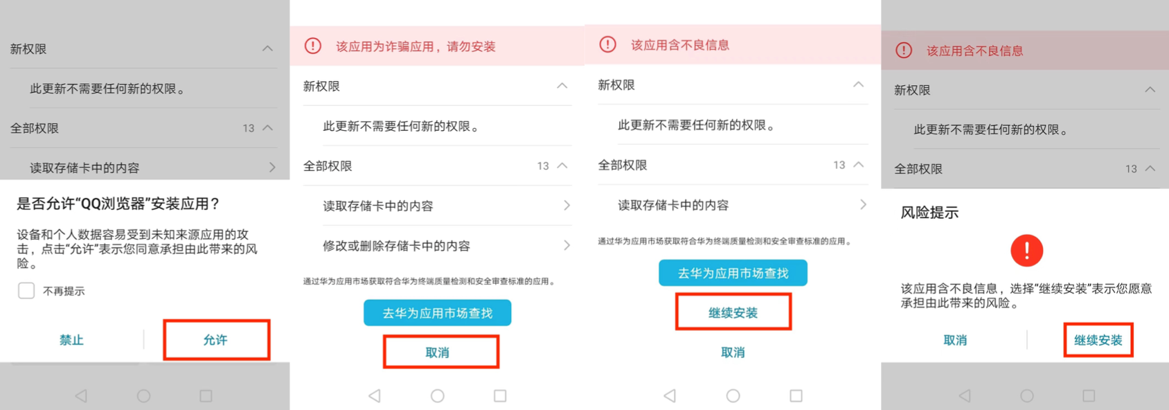 安卓手机下载安装包后,出现 “病毒风险”、“安全风险”等提示无法完成安装怎么办?
