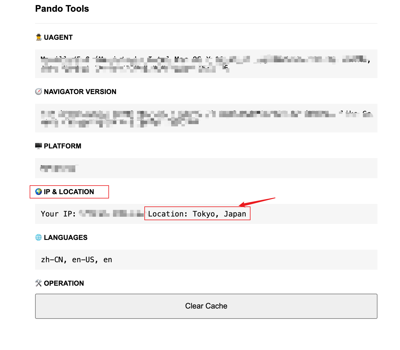 请点击链接 https://app.pando.im/tools.html ,如果无法打开页面或者打开页面后 “IP & Location”(IP & 位置信息)显示在中国 (China), 就说明没有连接成功。如果显示海外国家的名称,则 VPN 已经成功连接。