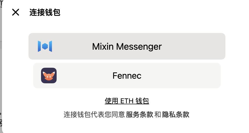 这里我使用Mixin进行登录,点”Mixin Messenger”,跳出二维码,打开Mixin或者新生APP,扫码登录即可。如果是在手机上,在 新生/Mixin 找到连接钱包的按钮,再点授权登录。