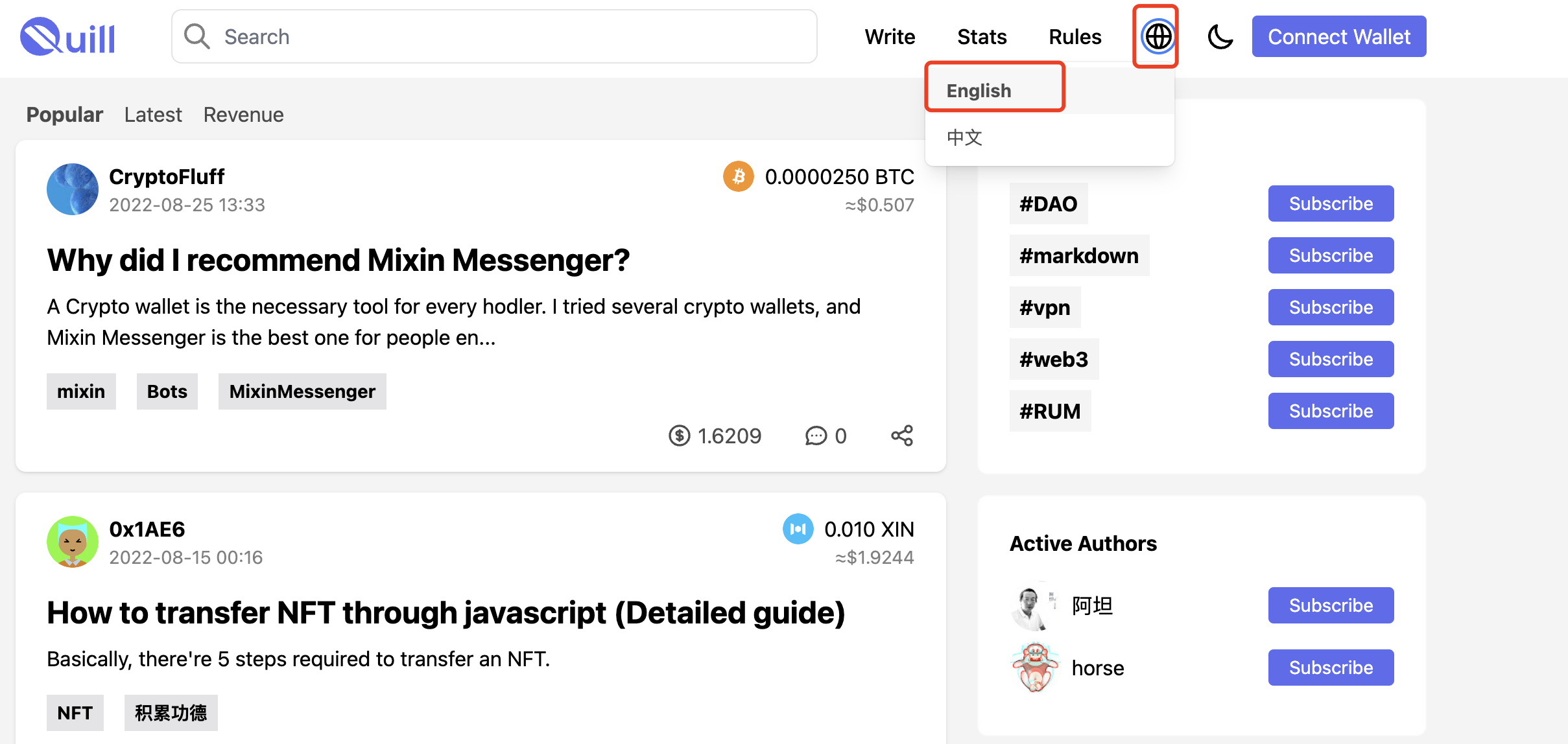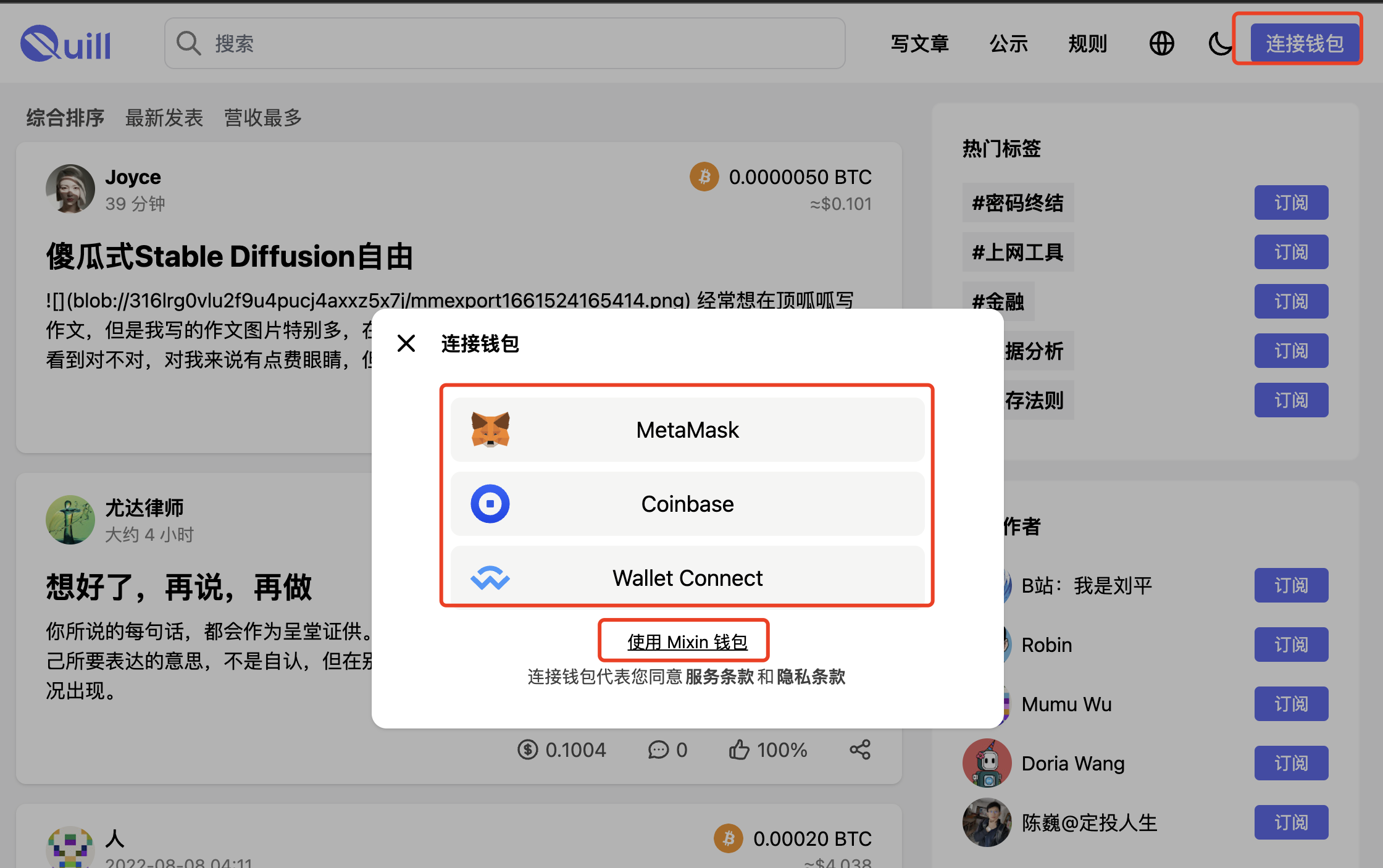 Quill 为作者与读者打造一个 Web3 的价值网络。 翻译一下就是作者读者都能赚钱的意思,当然不止这些。
