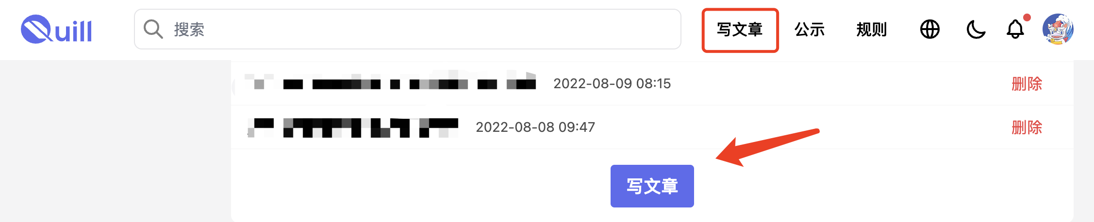 点击写文章就可以新建一篇文章。