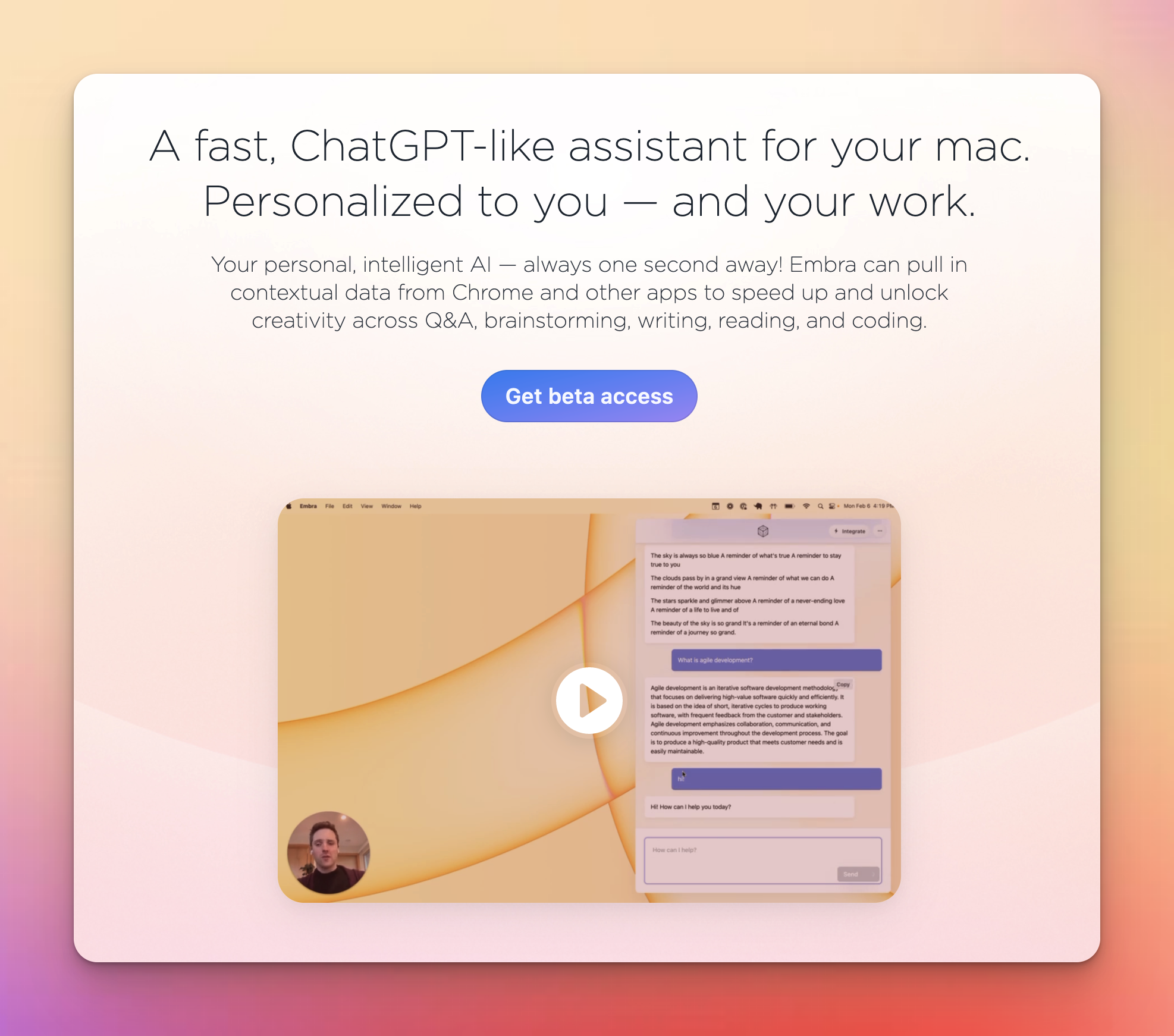 好吧,果然有人想到把AI带到桌面了,不过这款只支持macOS,我会继续关注类似产品,并分享给大家。