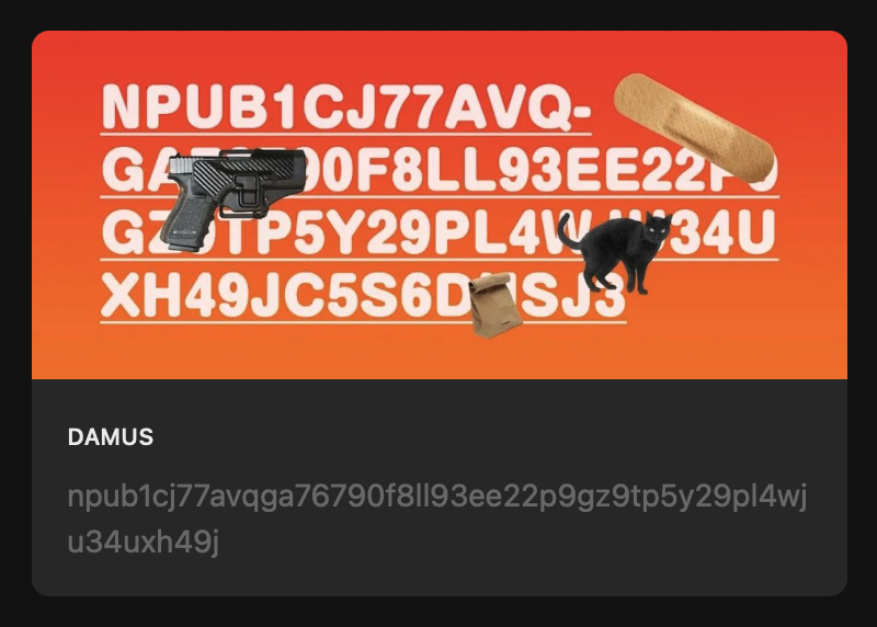 我个人对Damus很感兴趣,因为它的注册和登陆不需要提供手机号/邮箱/钱包,在一台能上网的设备就能完成整个过程,门槛非常低,如果团队能优化一下体验会有不错的留存,有兴趣的朋友可以follow一下我:npub1aul8tvqcyhjmyg35gj477m43vg9md978glhzlfmggcldzz8d4n8sdp34a6