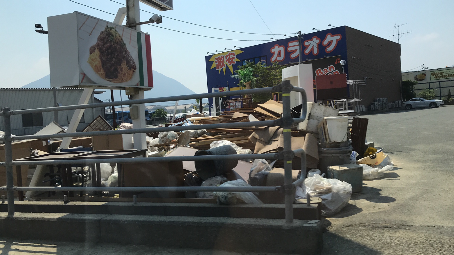 街のところどころに、大型のゴミが集積されている様子を確認できます。既に復興が始まっていました。
