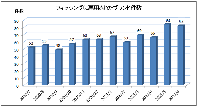 クレジットカードブランドをかたるフィッシングが多く、地方銀行やネット銀行なども含めた金融系ブランドは 8ブランド