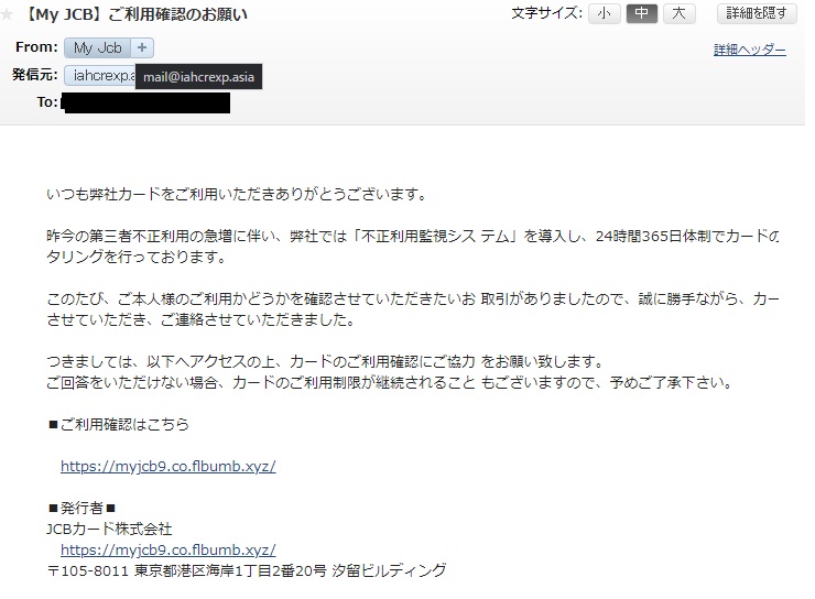 多くのフィッシングメールが差出人に正規のメールアドレス (ドメイン) を使用した「なりすまし」メールであることを確認しています。