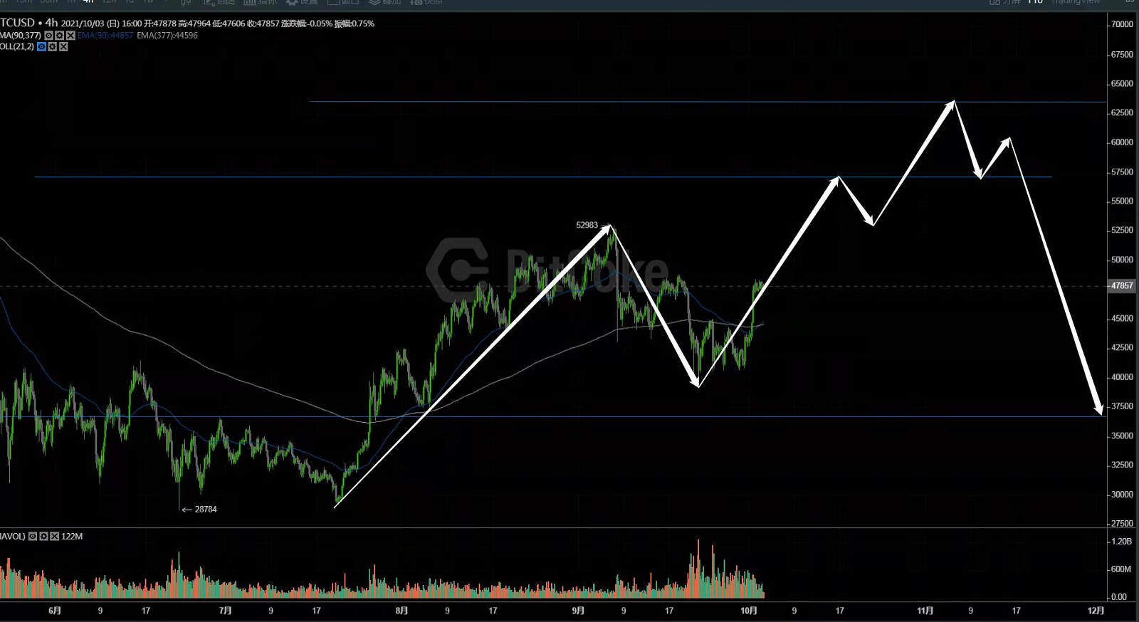 我在 2021.12.10做了一次预测,我以为会跟以往一样判断对。当突破前高的时候会加速冲刺9万,目标13万~结果完全错掉了,当然每一次预测走势本身就是一件概率性的事情。这次走势上涨动力受限于国内大环境被压制出入金通道。可能也许是庄家们想减弱回避监管的压力,暂时规避国内风险...