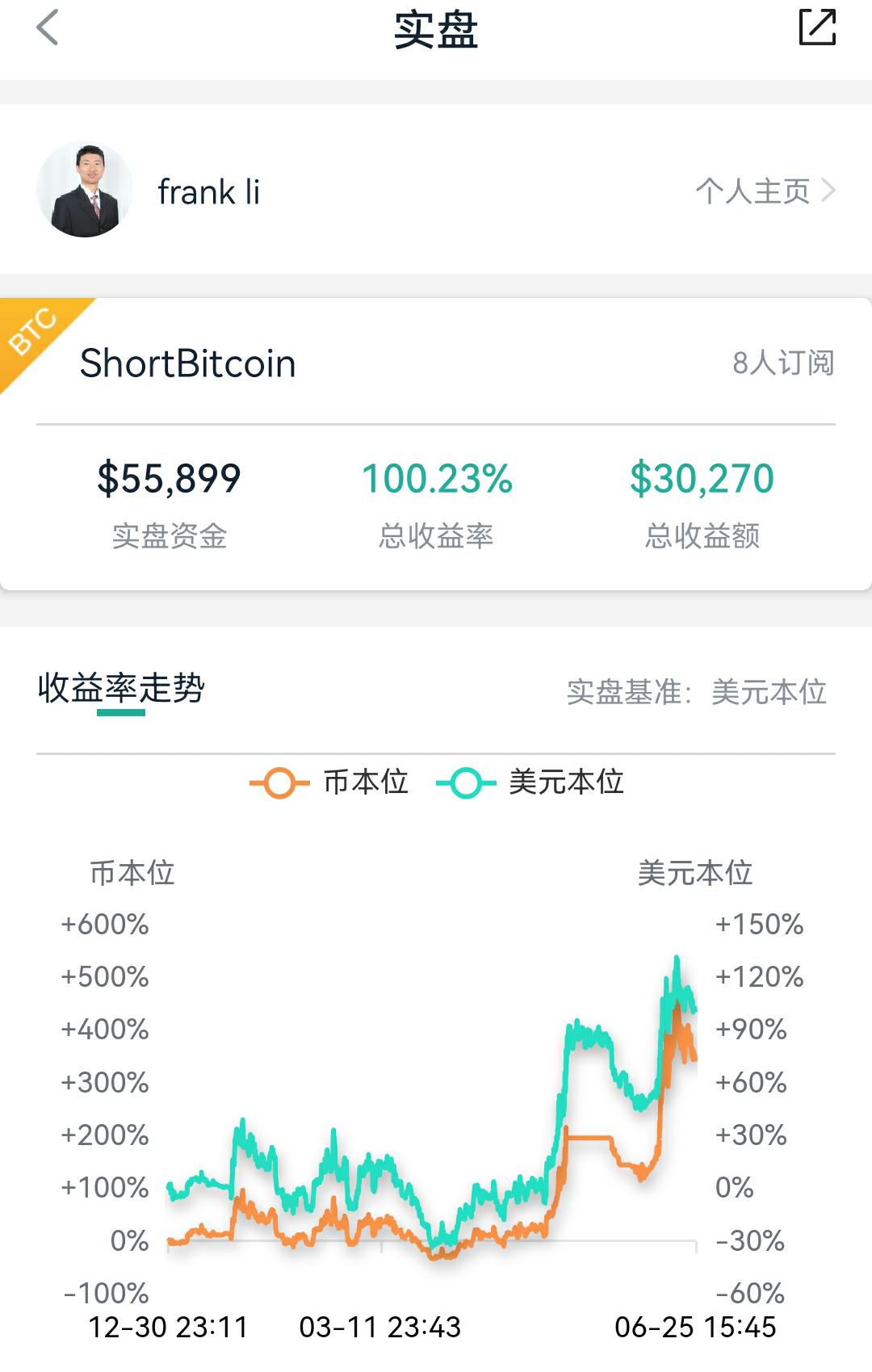 从2020年7月到2022年6月,李力投资比特币的实盘累计收益率为450%。实盘验证了这个比特币长期投资策略的有效性。