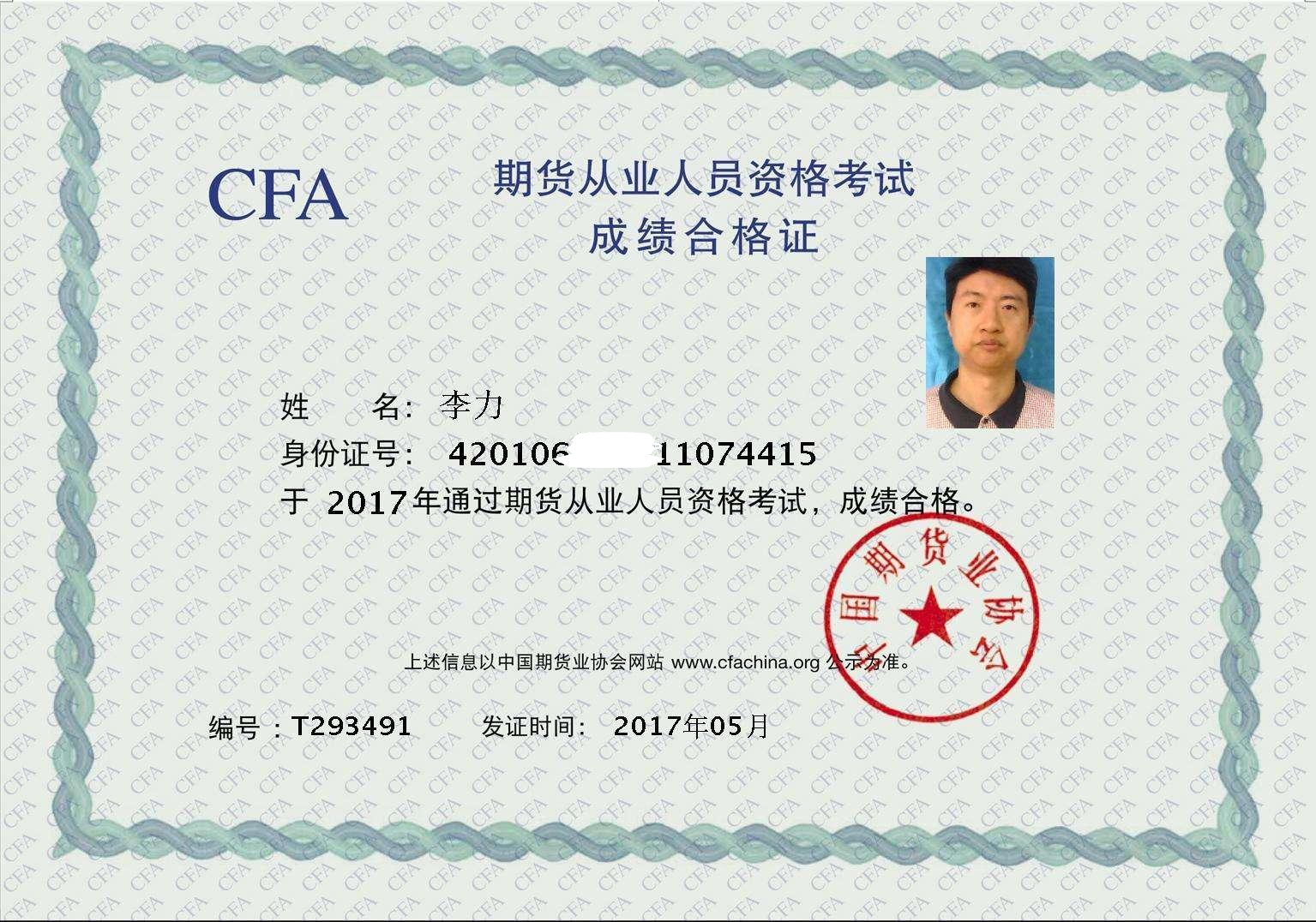 2017年5月,李力利用美国特许金融分析师一级学到的知识,考过了期货从业资格证。